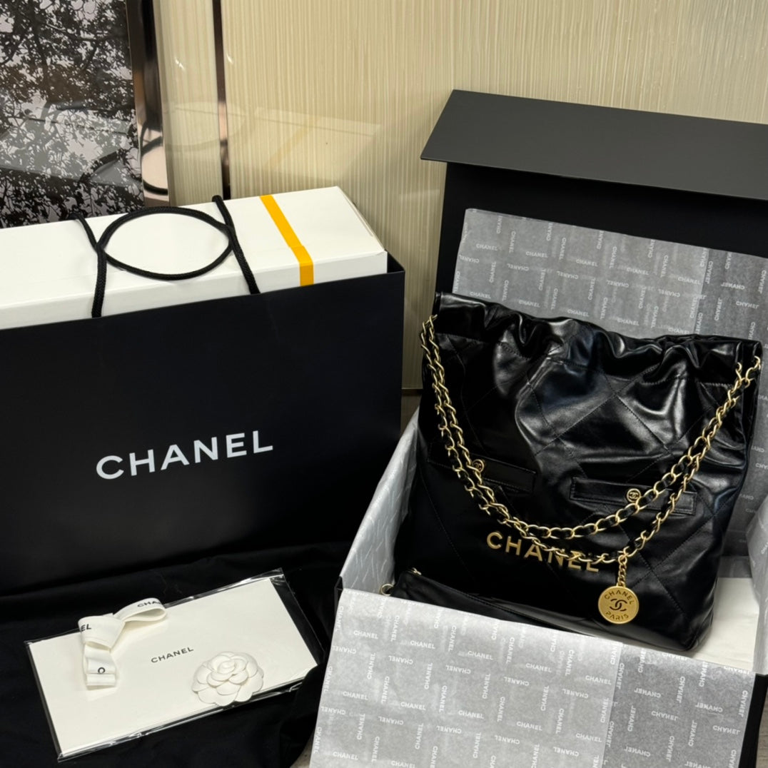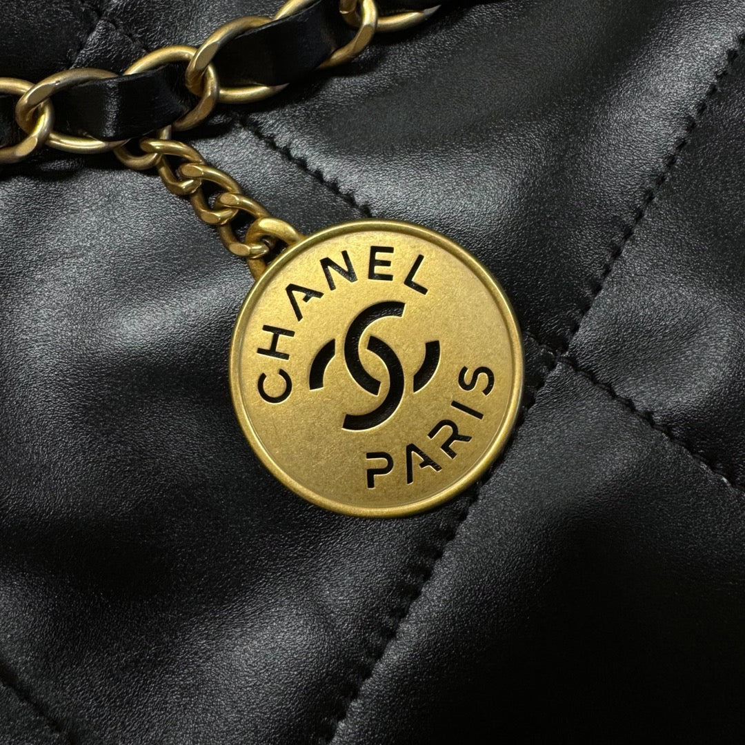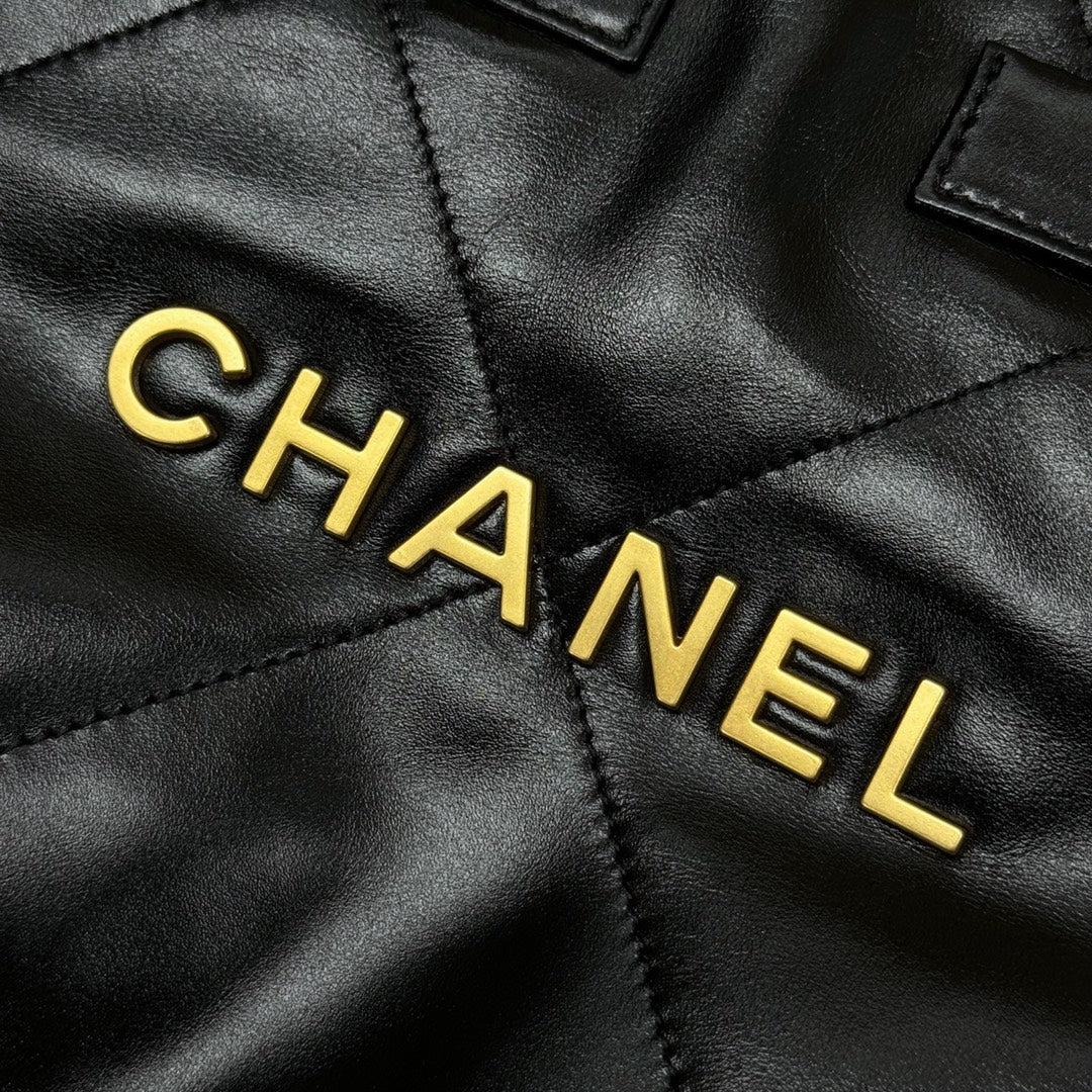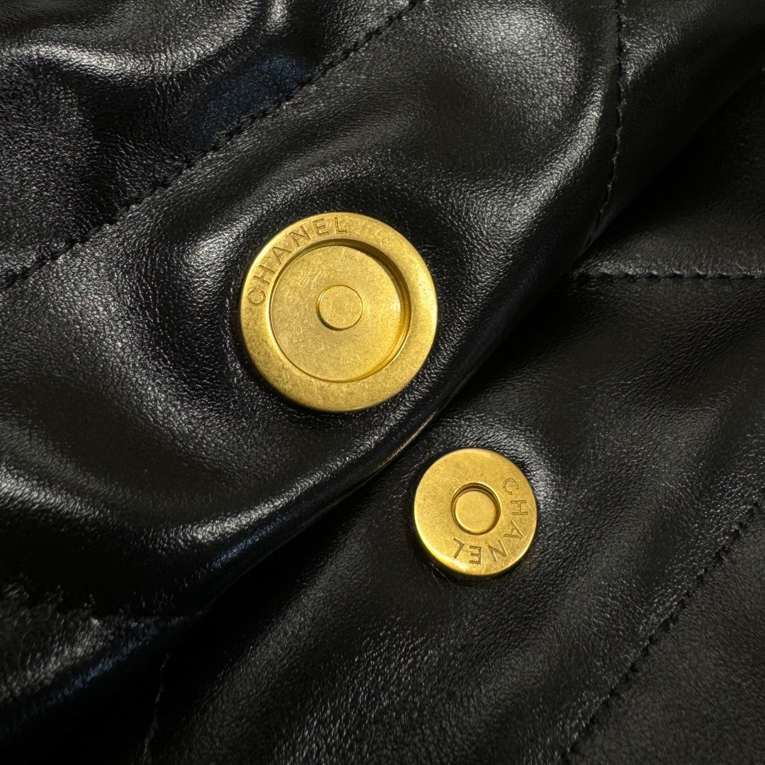 CH 24B 22 Handbag Hobo Bags Shiny Calfskin Black