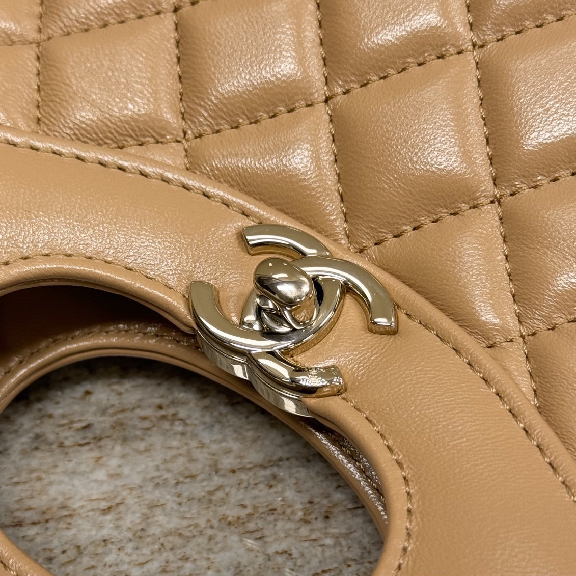CH 31 Mini Shopping Bag Shiny Lambskin Dark Beige