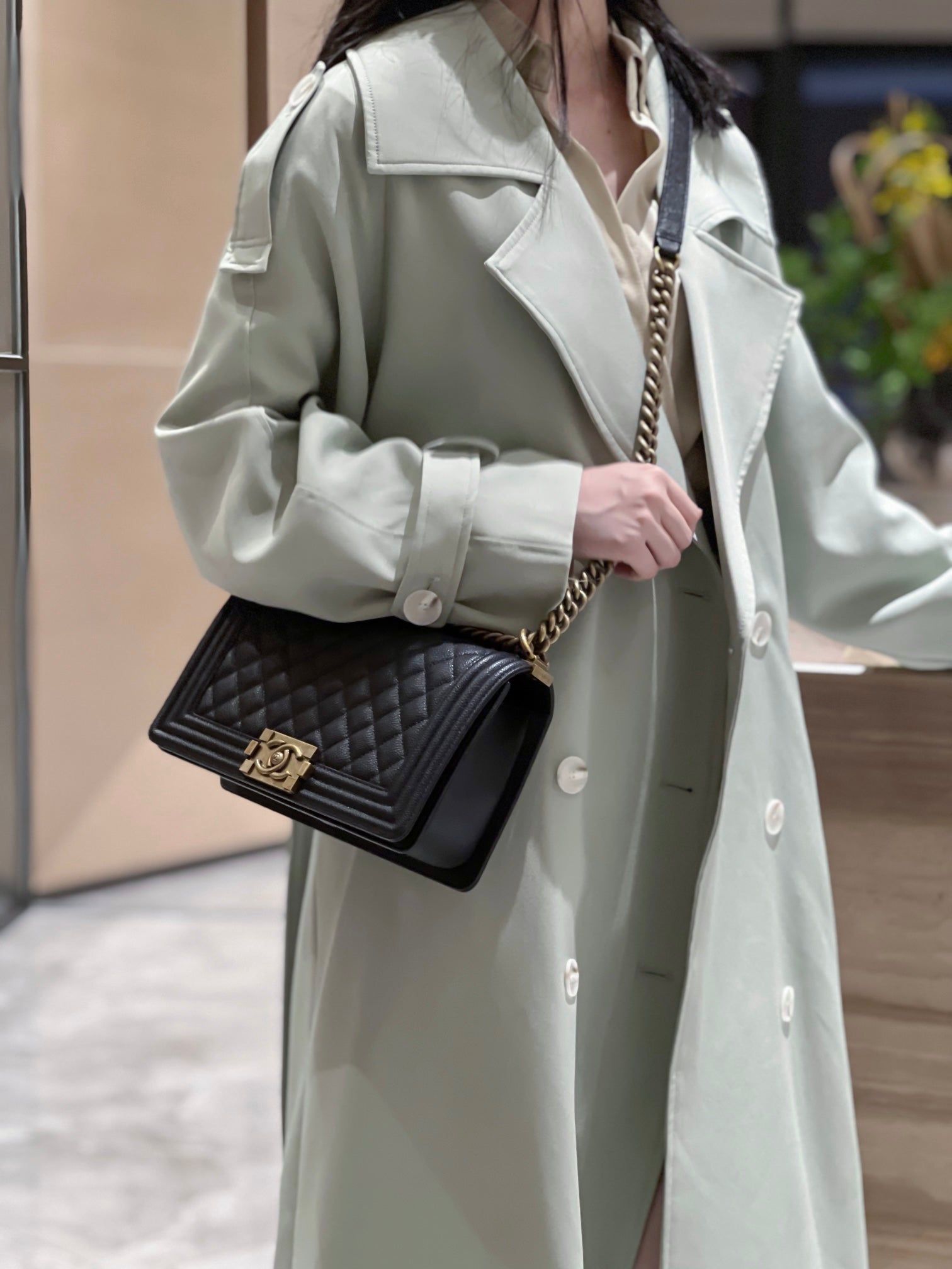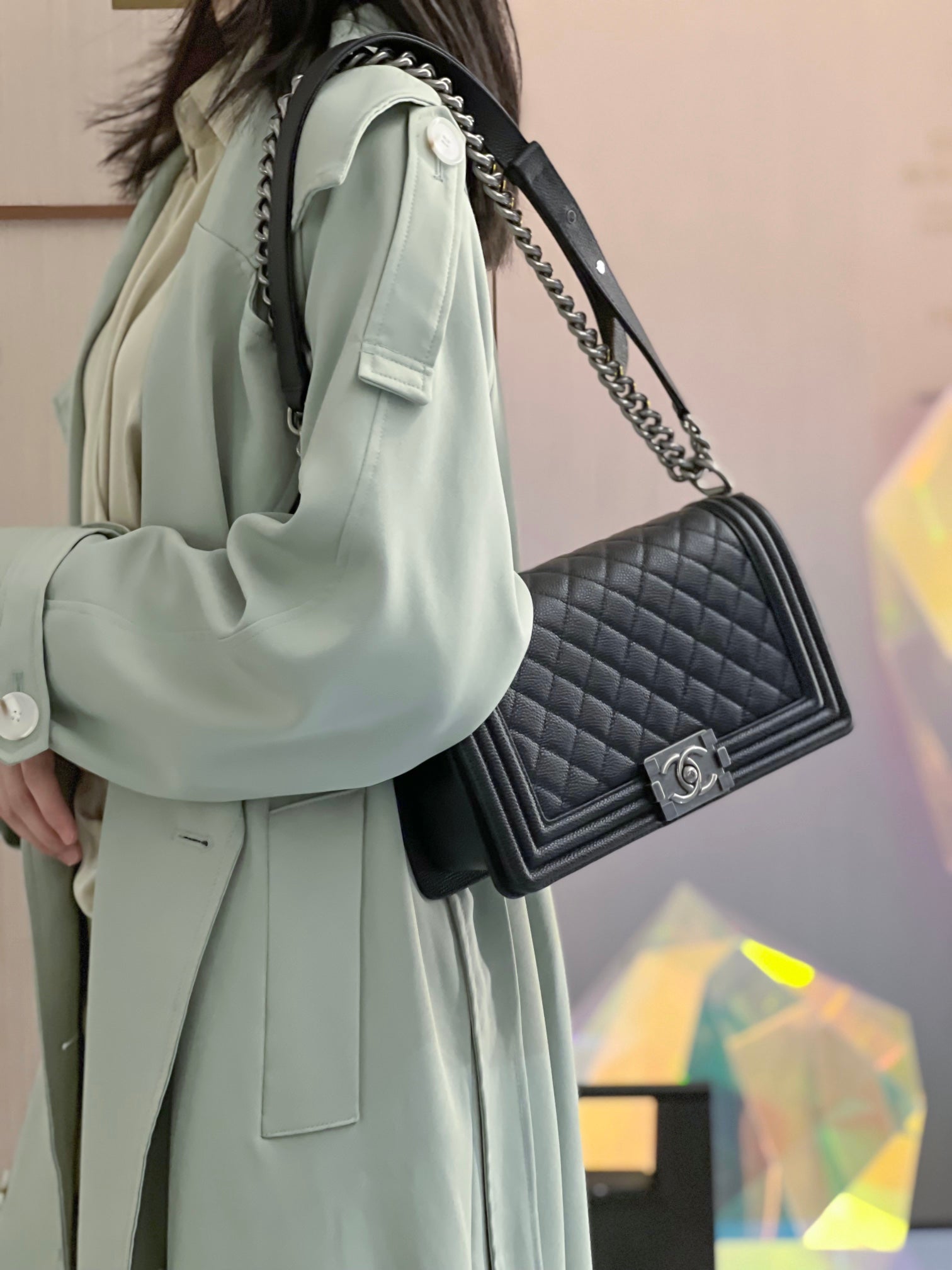 CH BOY HANDBAG 25 Grained Calfskin Black