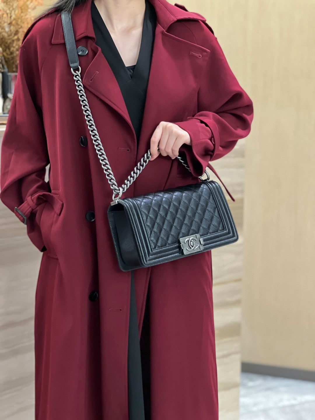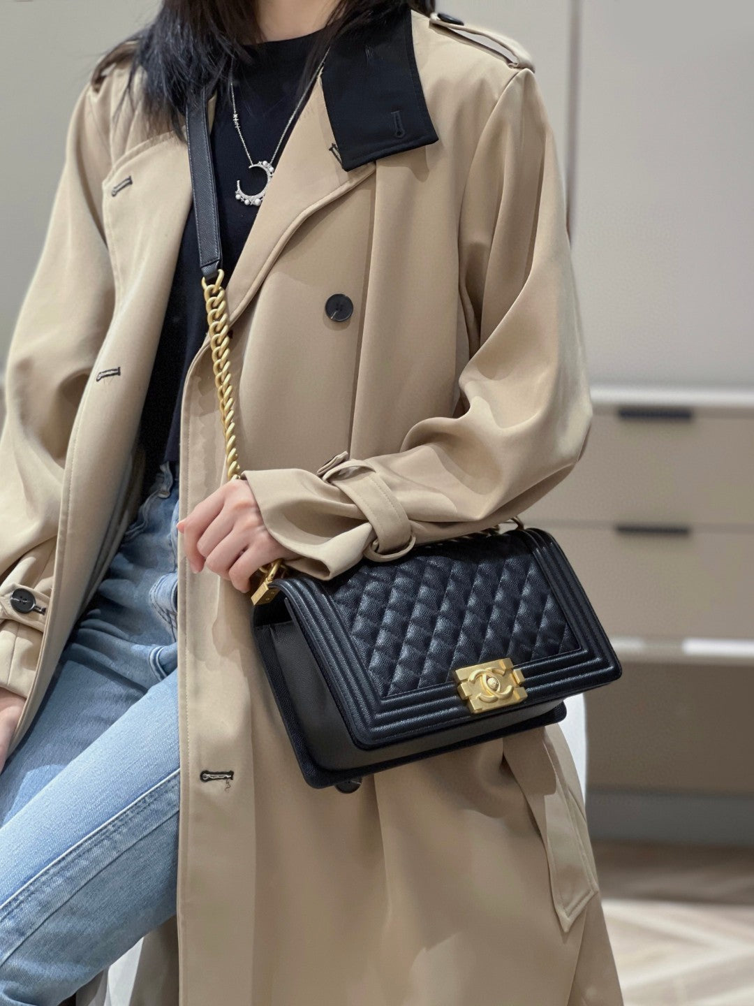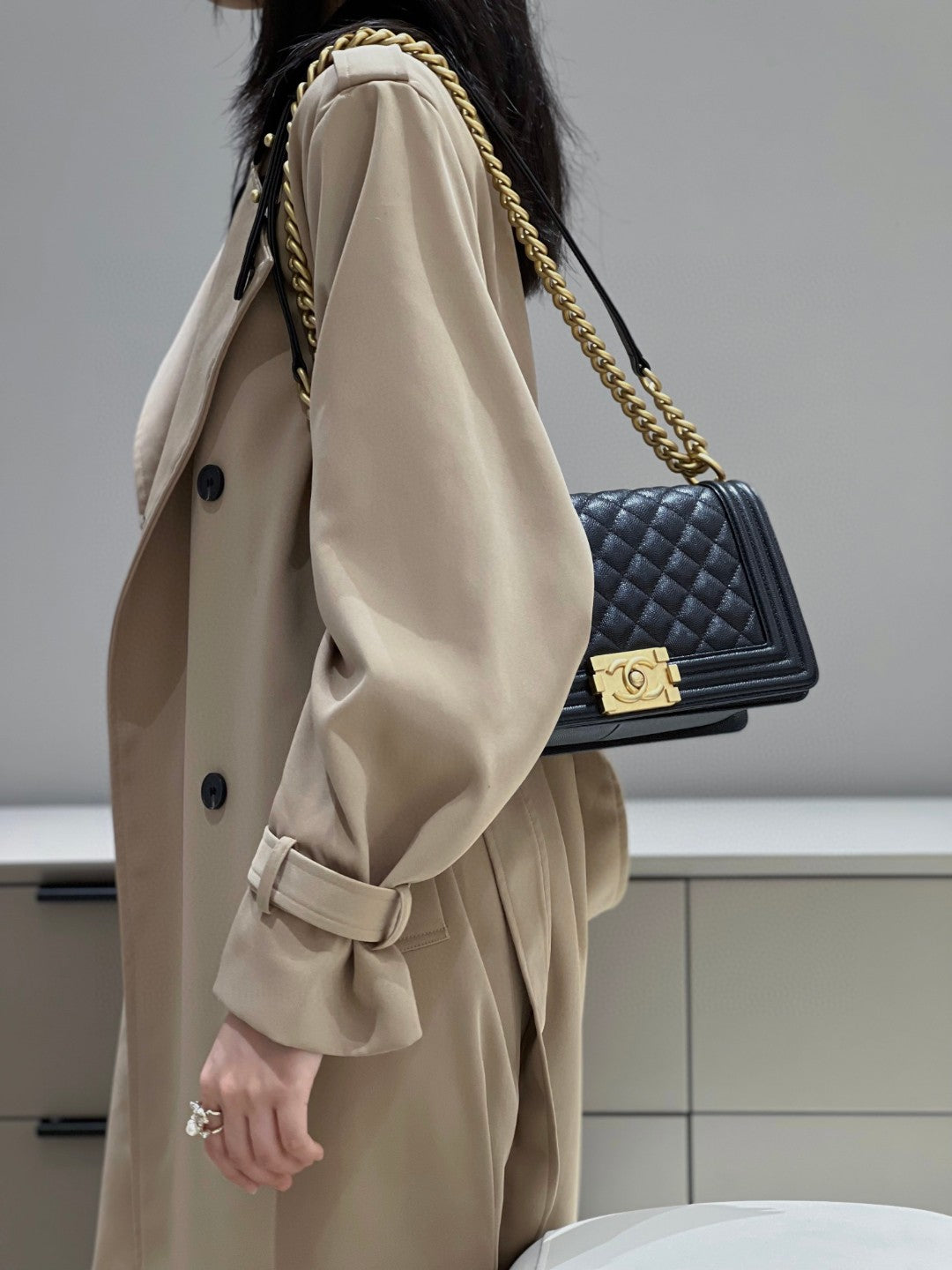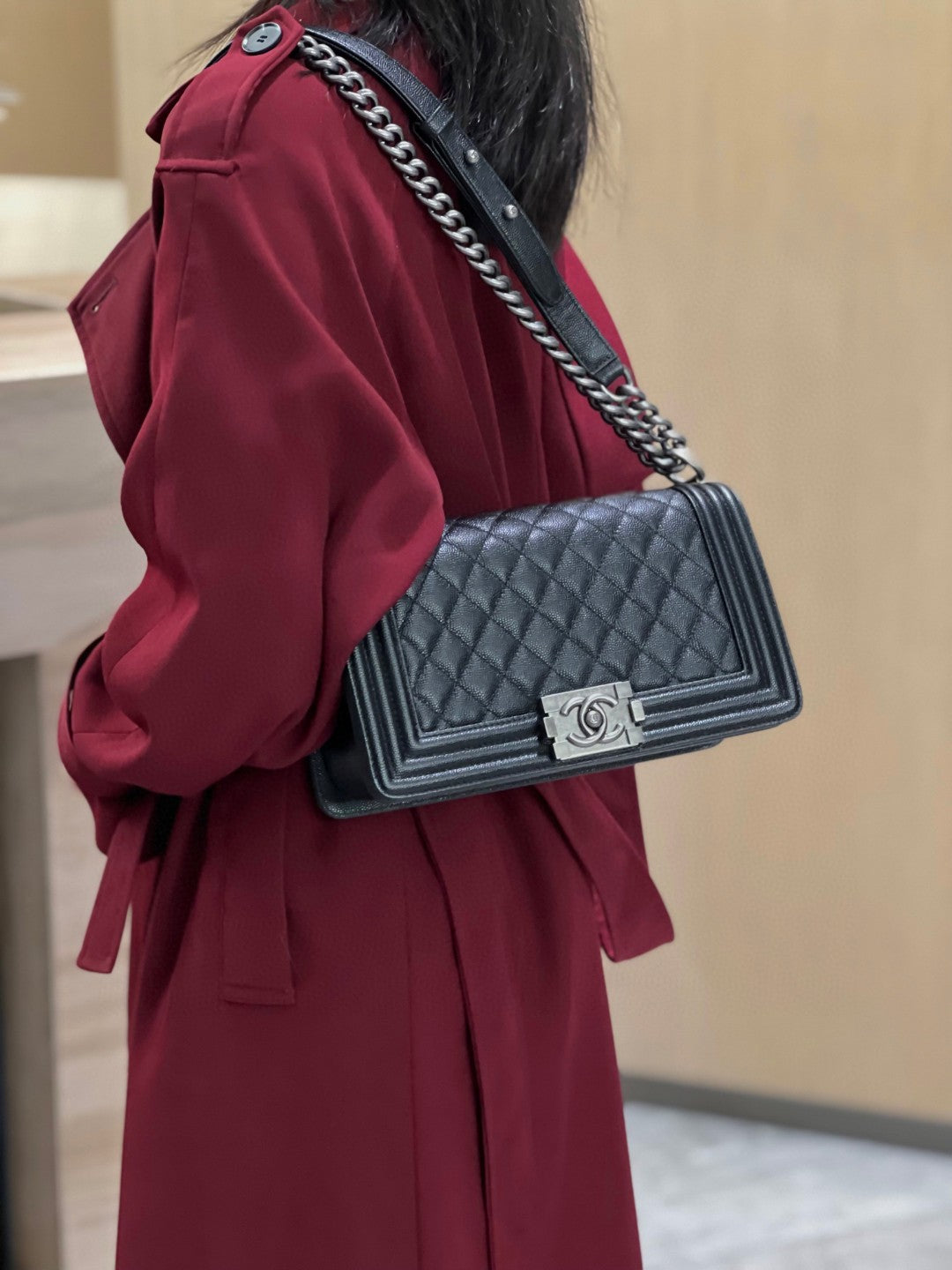 CH BOY HANDBAG 25 Small Grained Calfskin Black