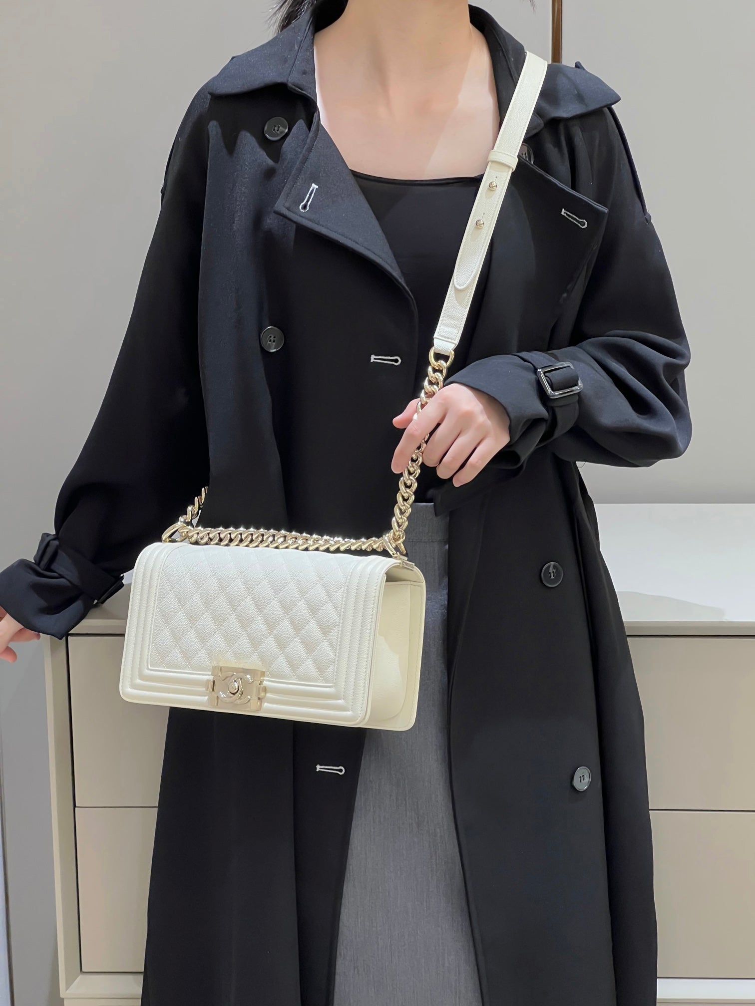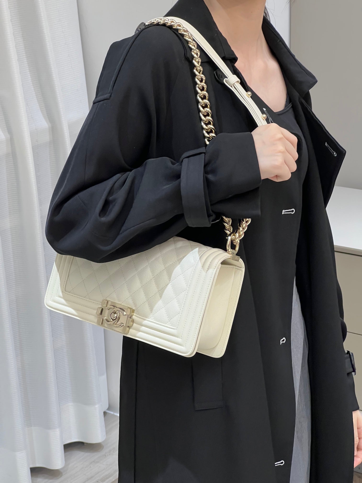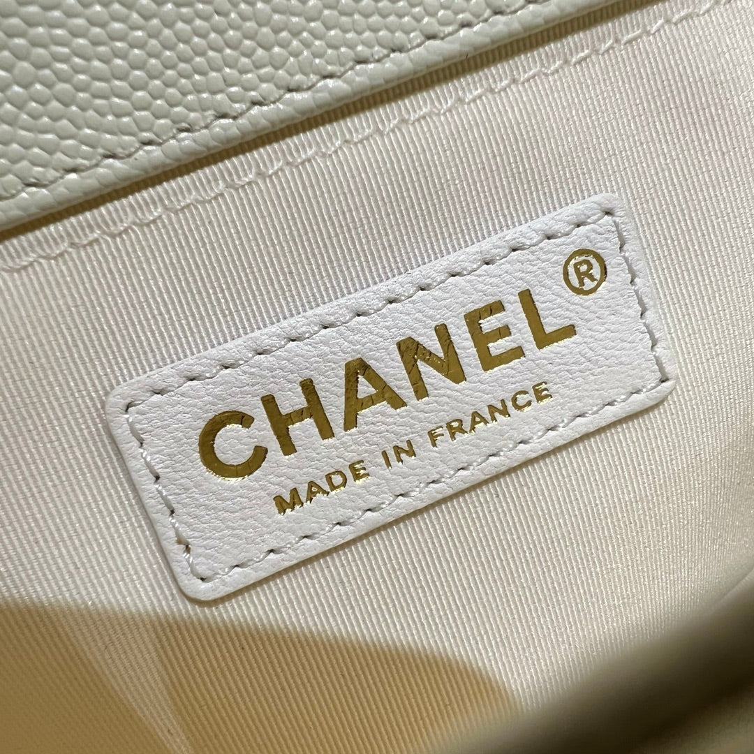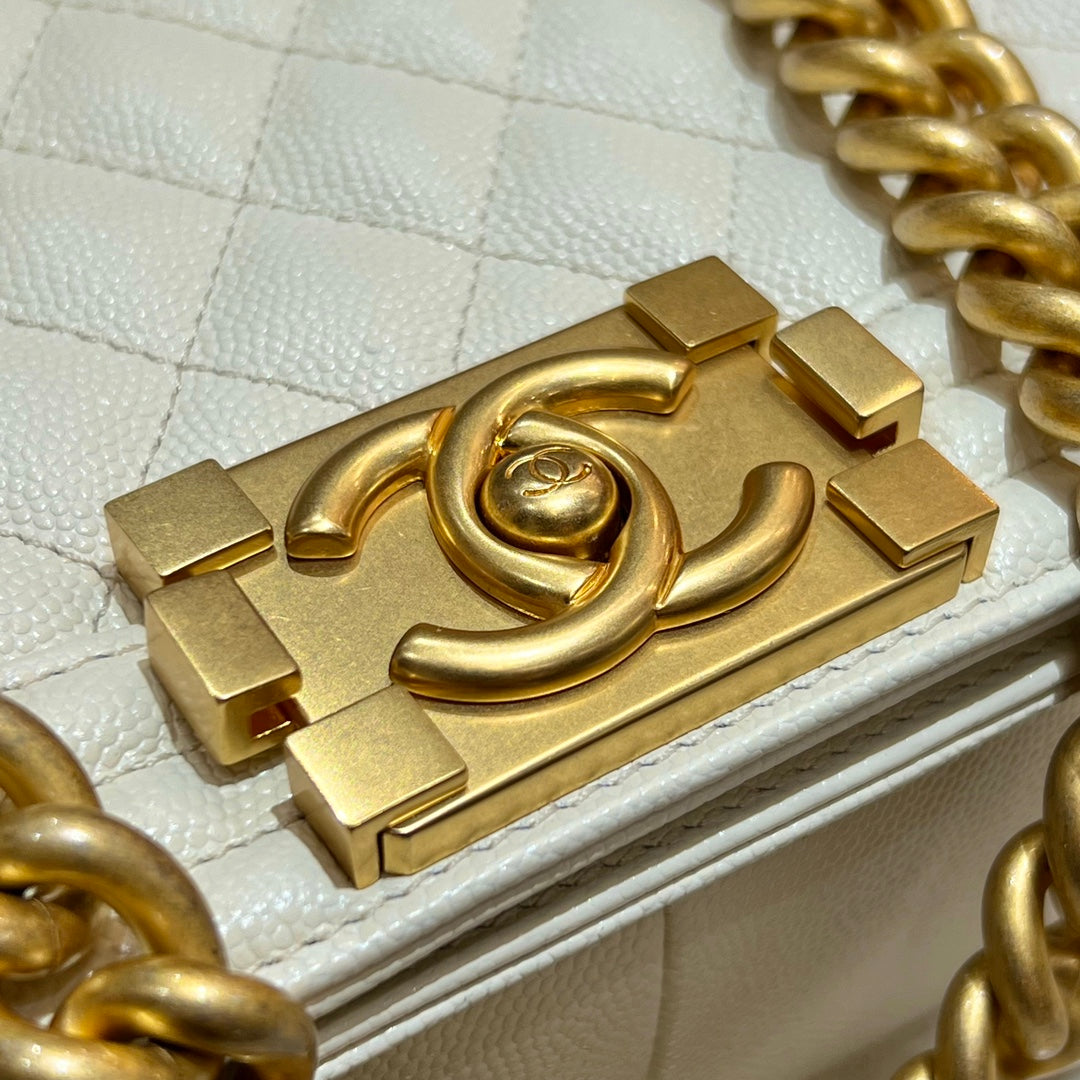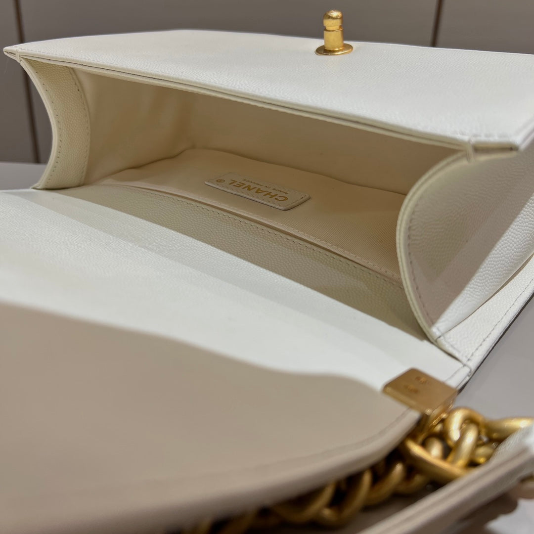 CH BOY HANDBAG 25 Small Grained Calfskin Ivory White