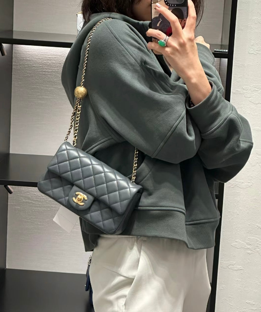 CH CF20 Golden Globe CLASSIC HANDBAG Lambskin Dark Gray