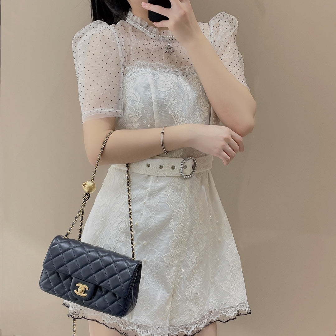 CH CF20 Golden Globe CLASSIC HANDBAG Lambskin Deep sea blue
