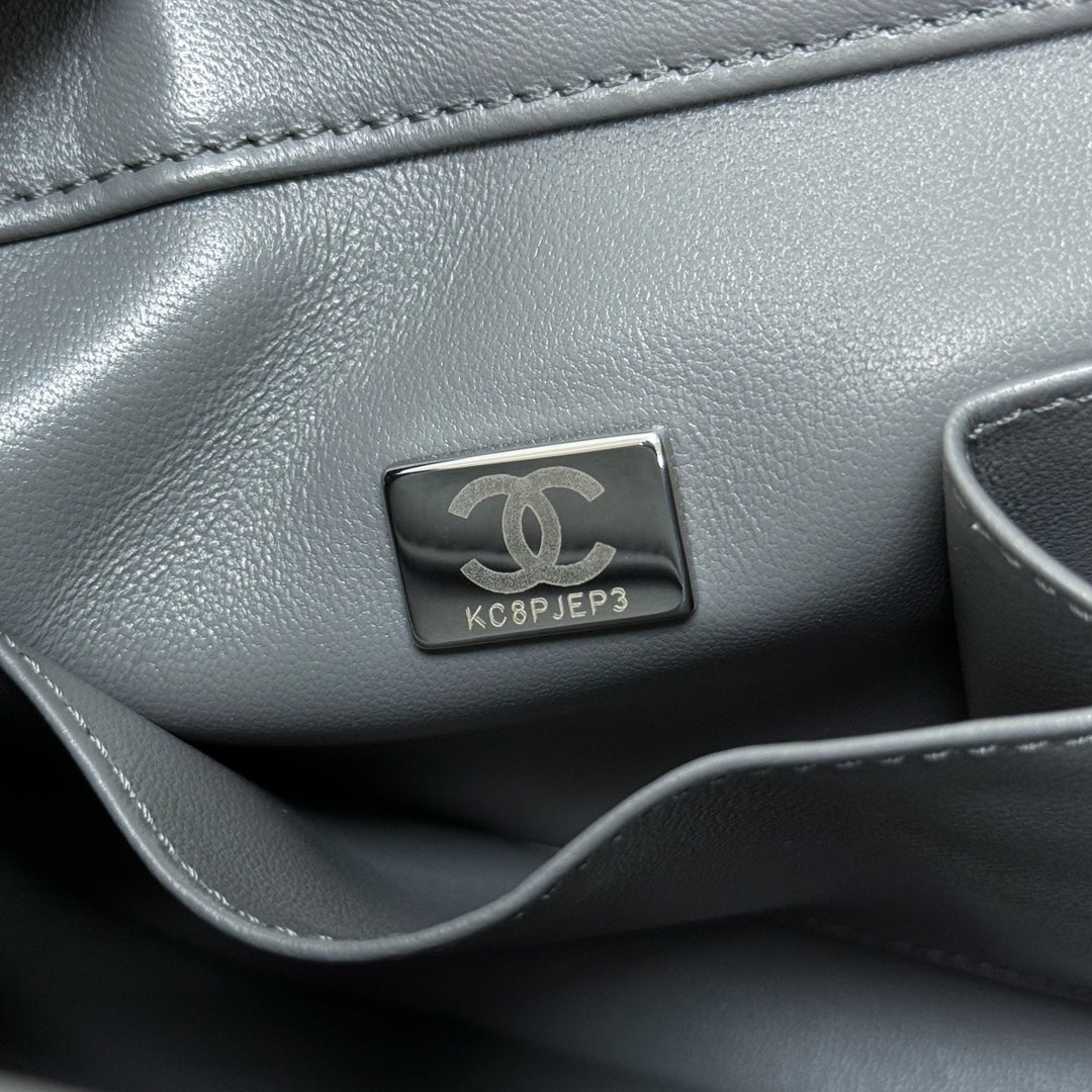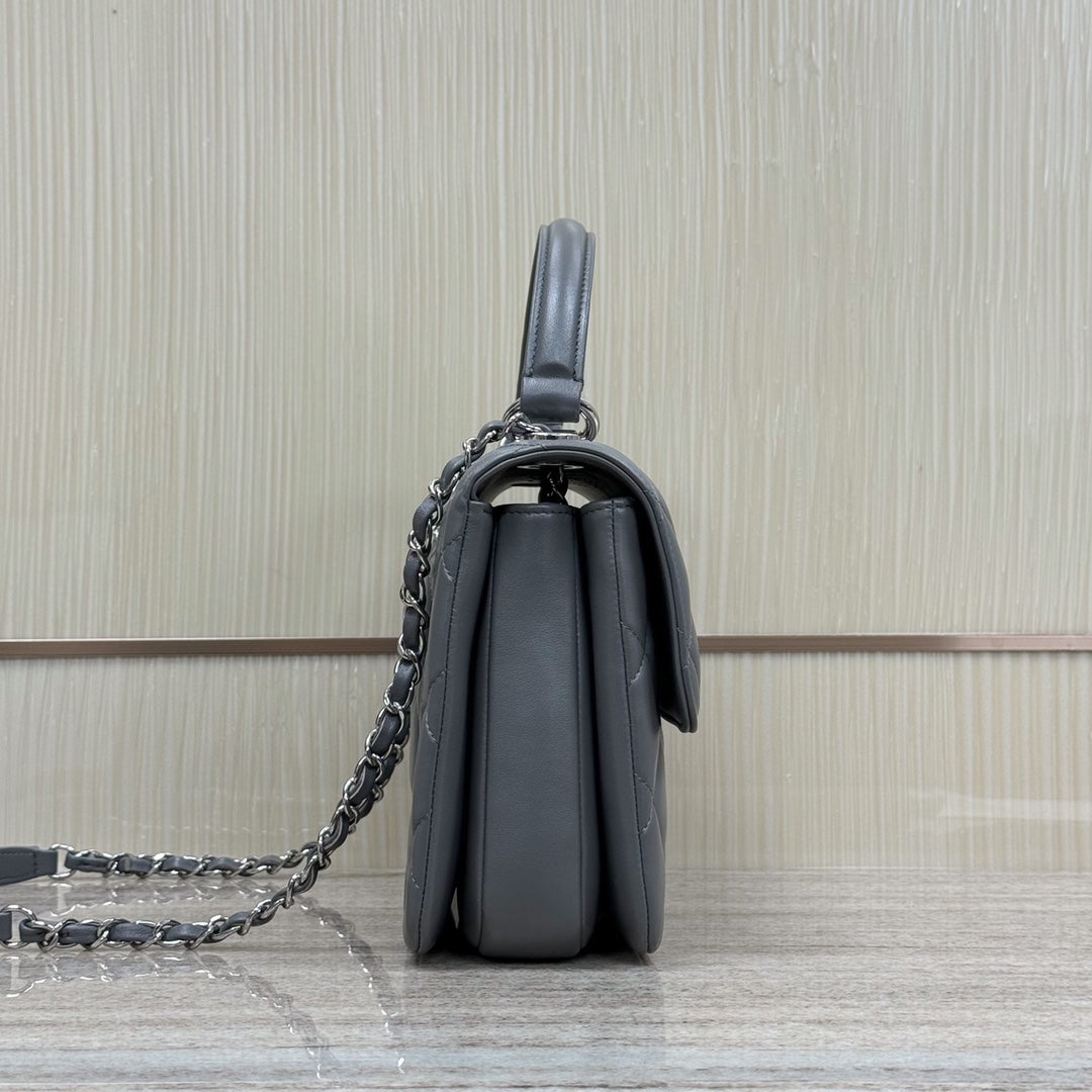 CH FLAP BAG WITH TOP HANDLE Trendy cc Lambskin Gray