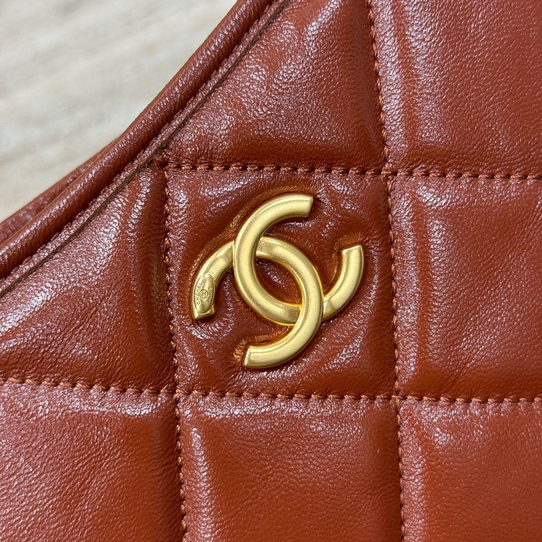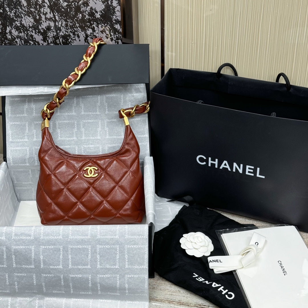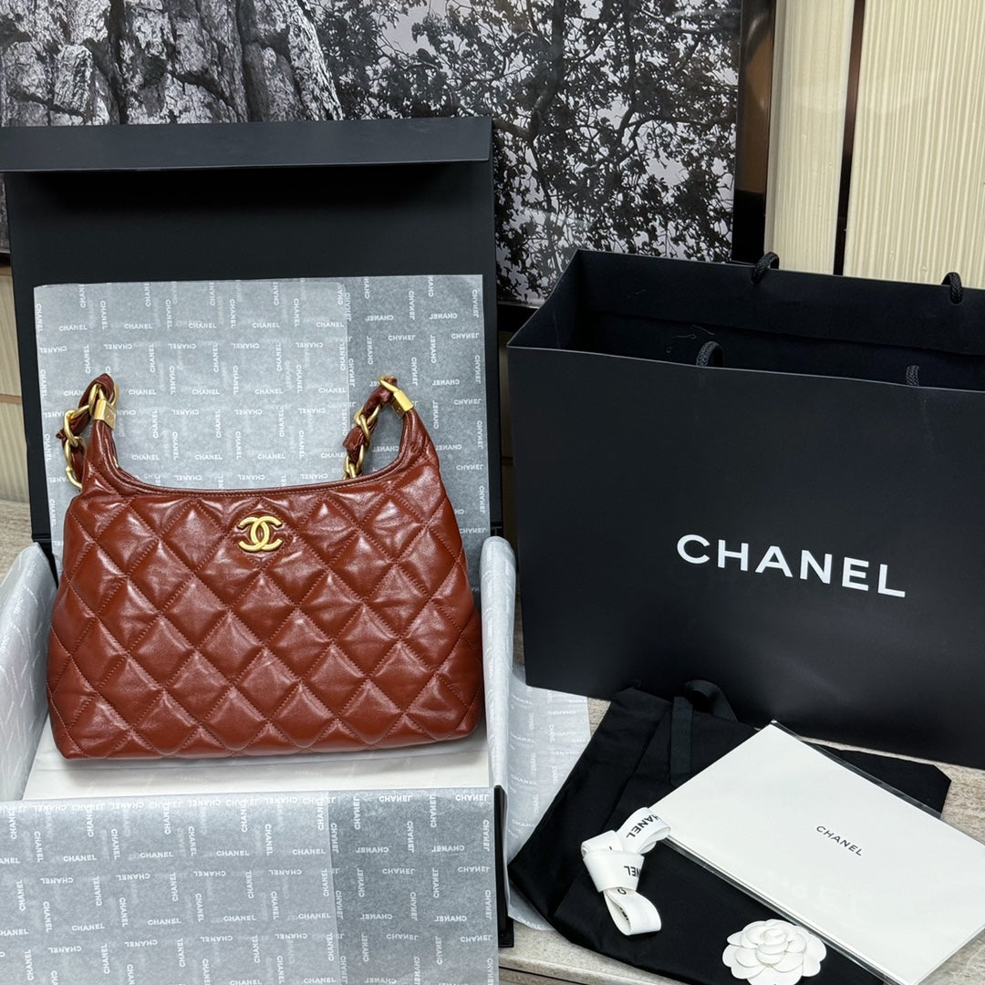 CH Hobo Handbag Shiny Calfskin & Gold-Tone Metal