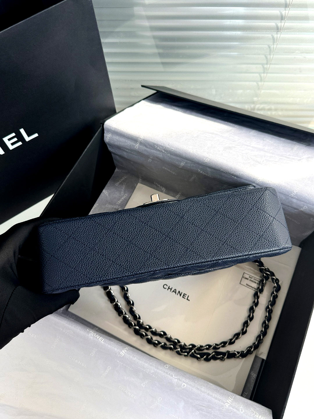 CH CLASSIC 11.12 HANDBAG 25.5 Grained Calfskin Navy Blue