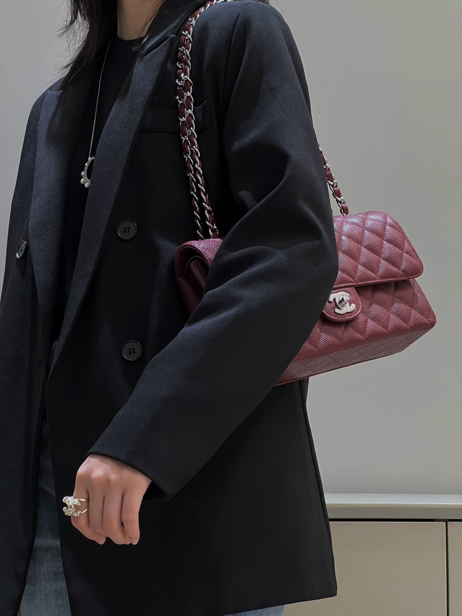 CH CLASSIC 11.12 HANDBAG 25.5 Grained Calfskin Red Wine Color