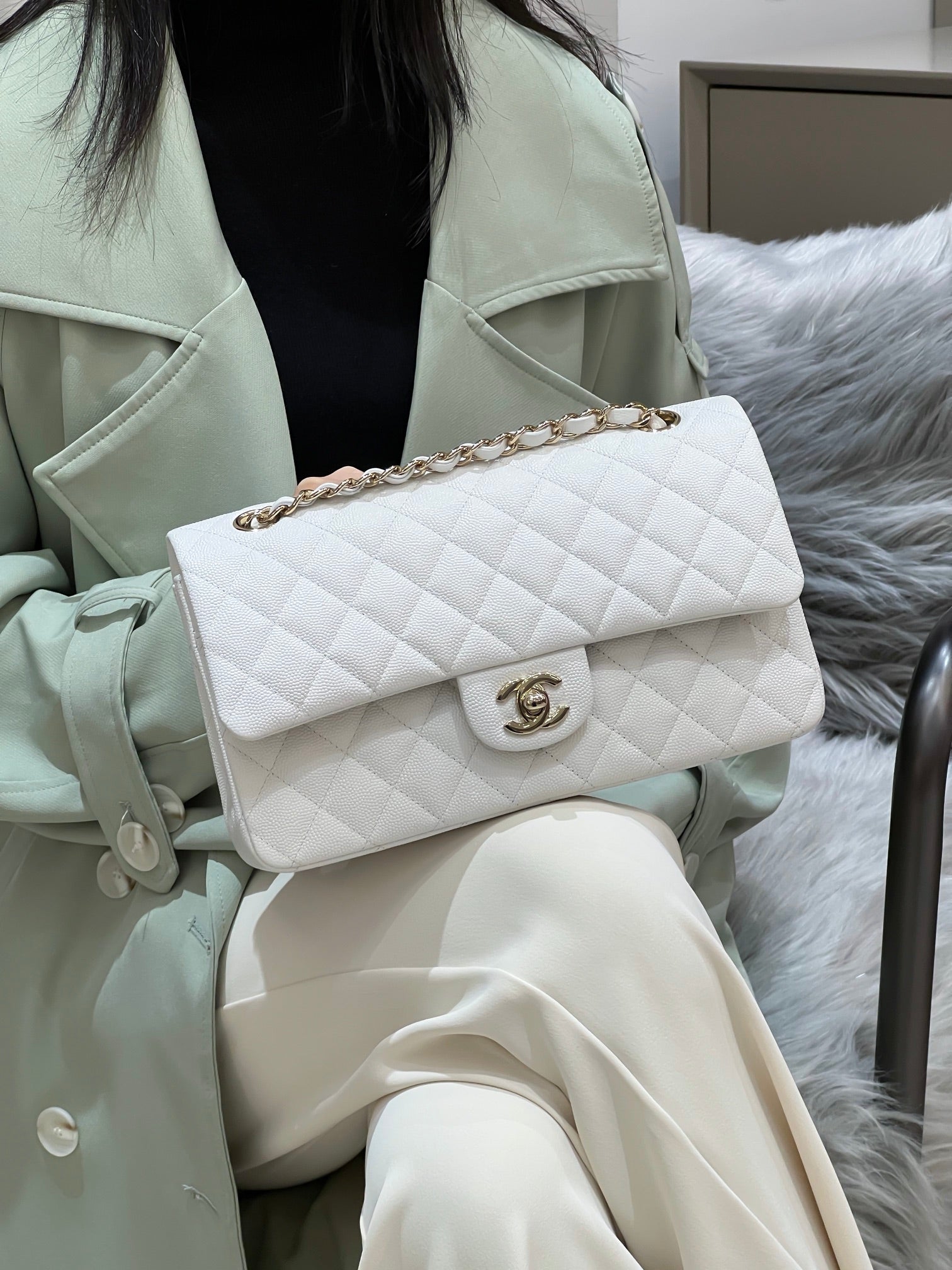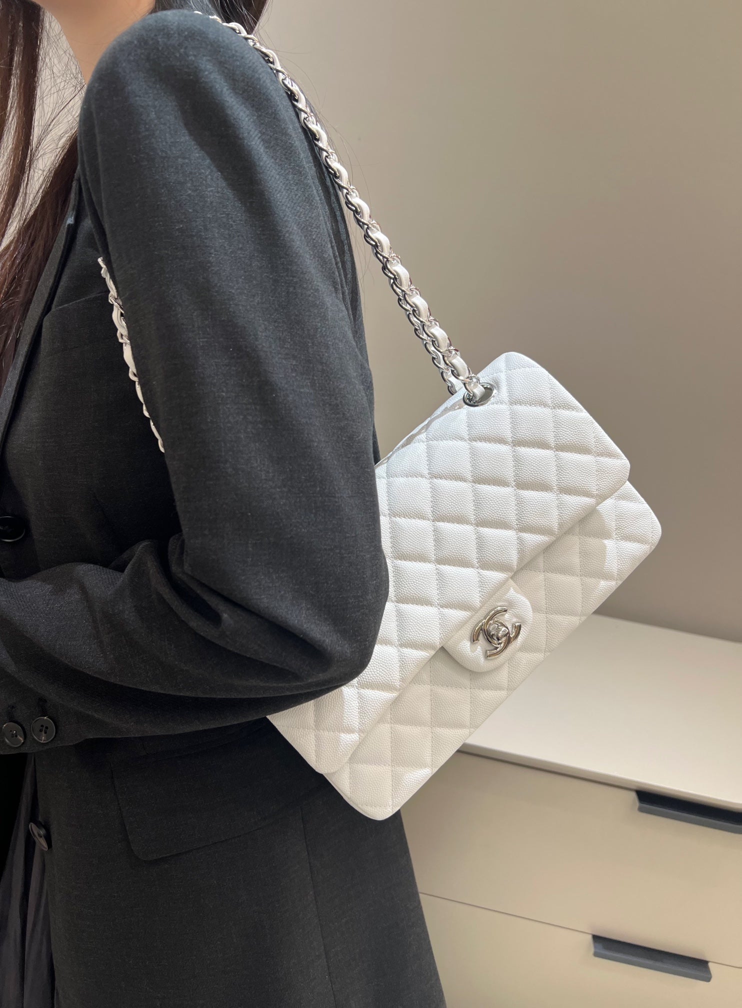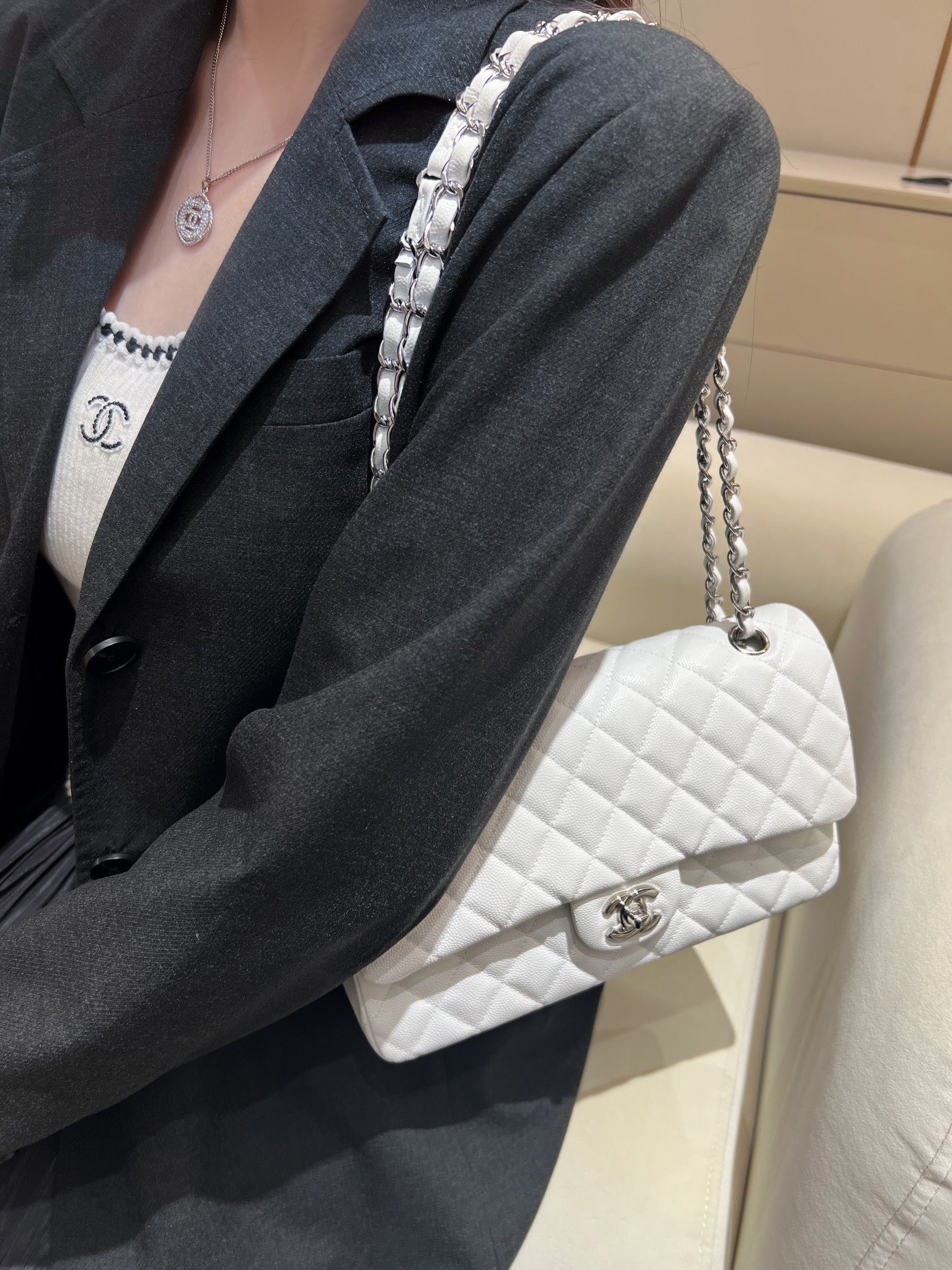 CH CLASSIC 11.12 HANDBAG 25.5 Small Grained Calfskin White