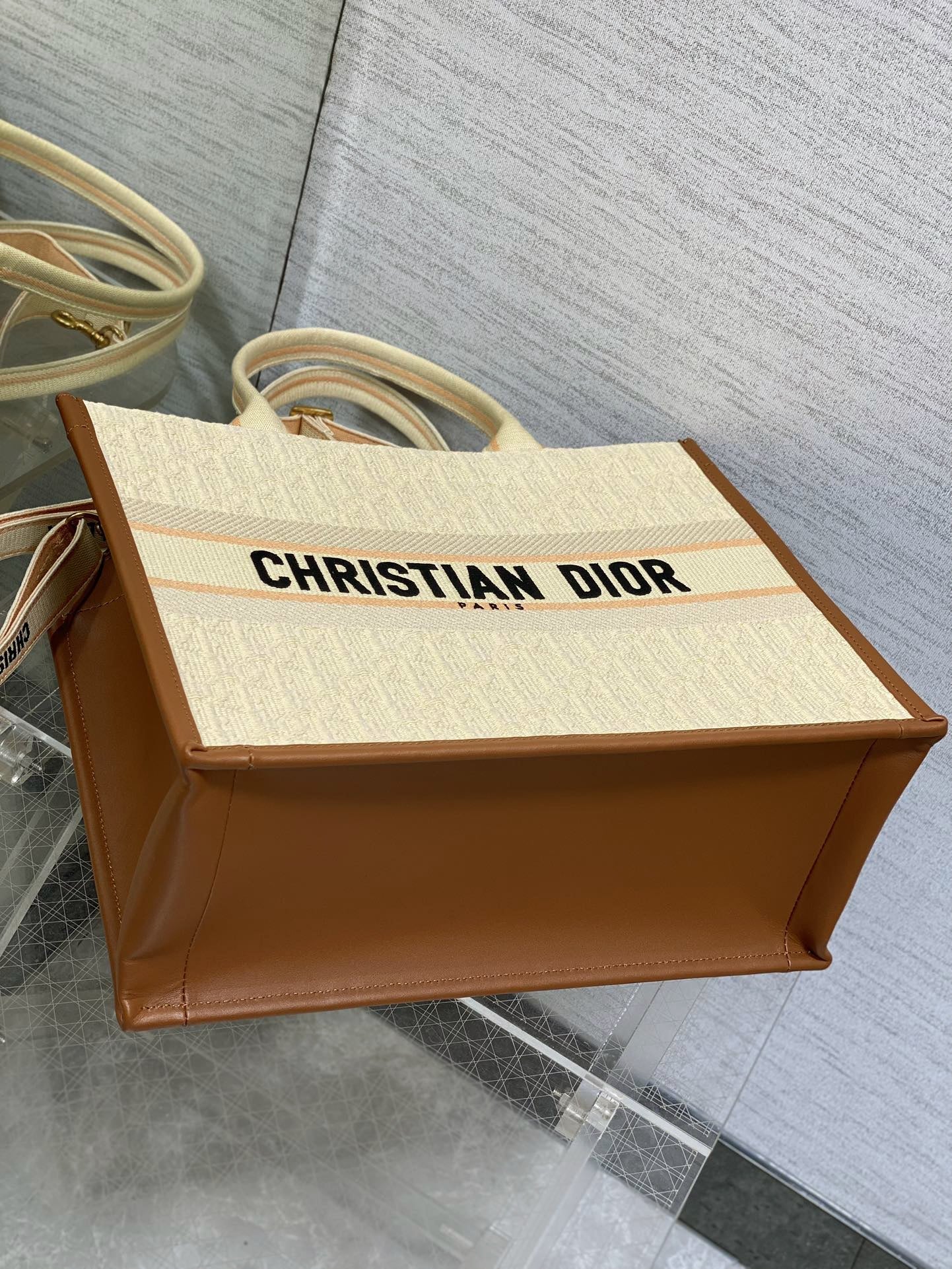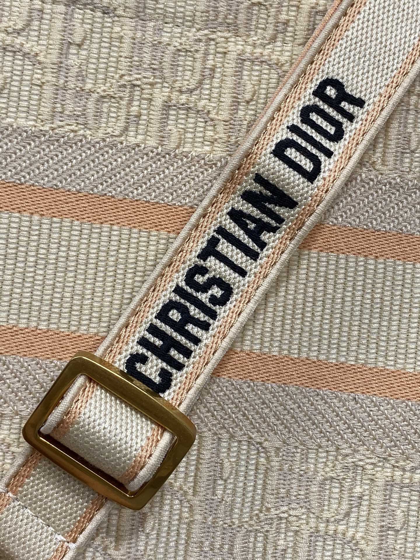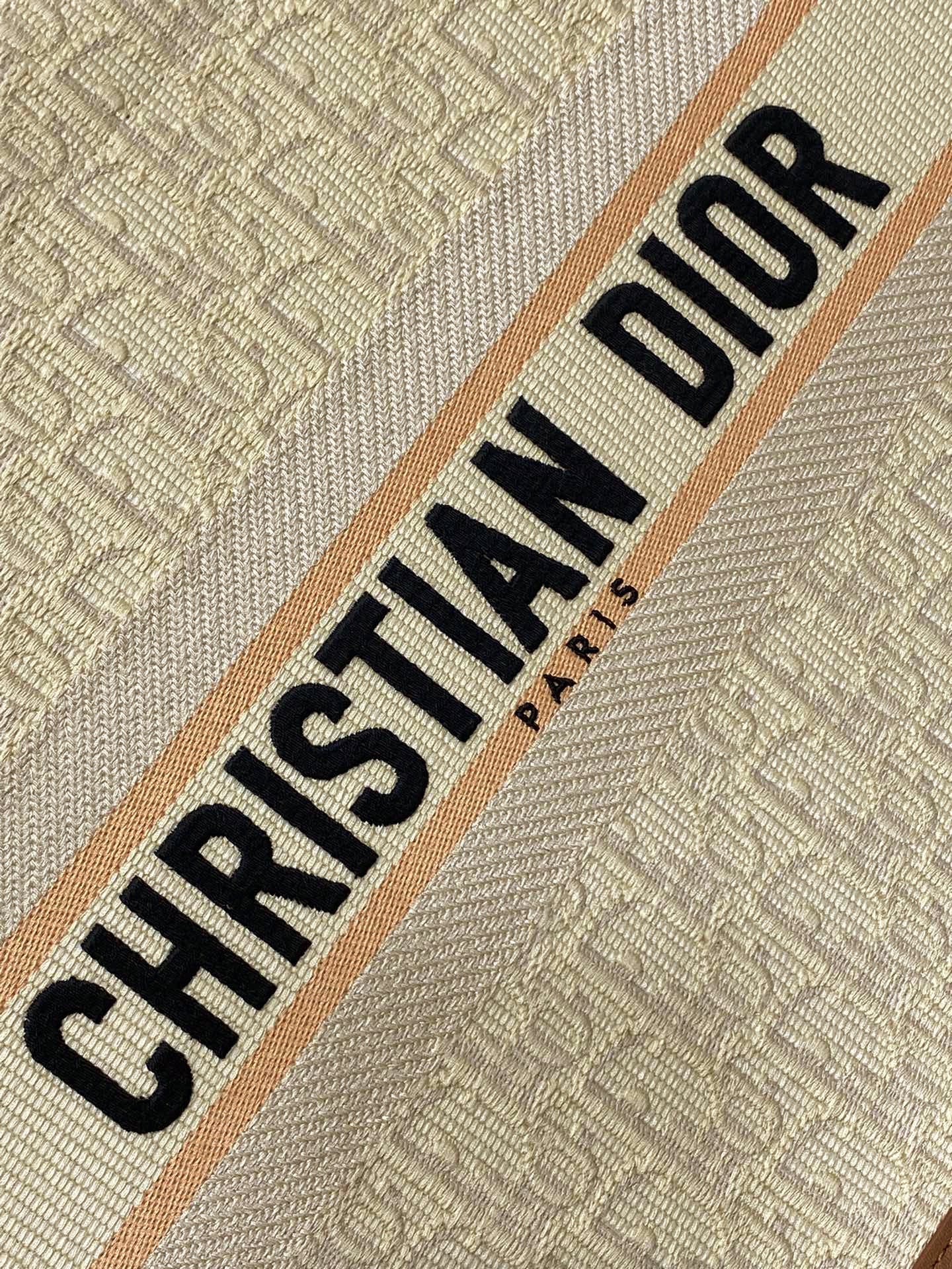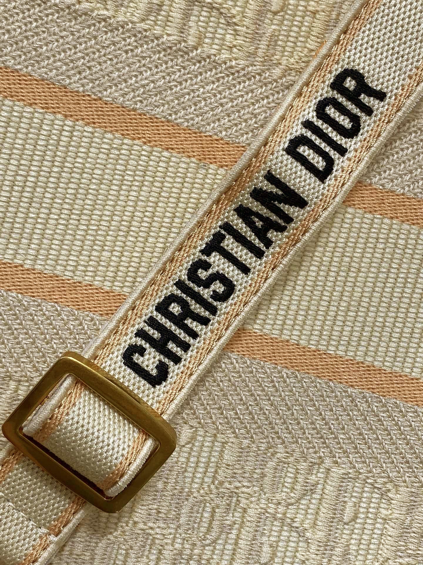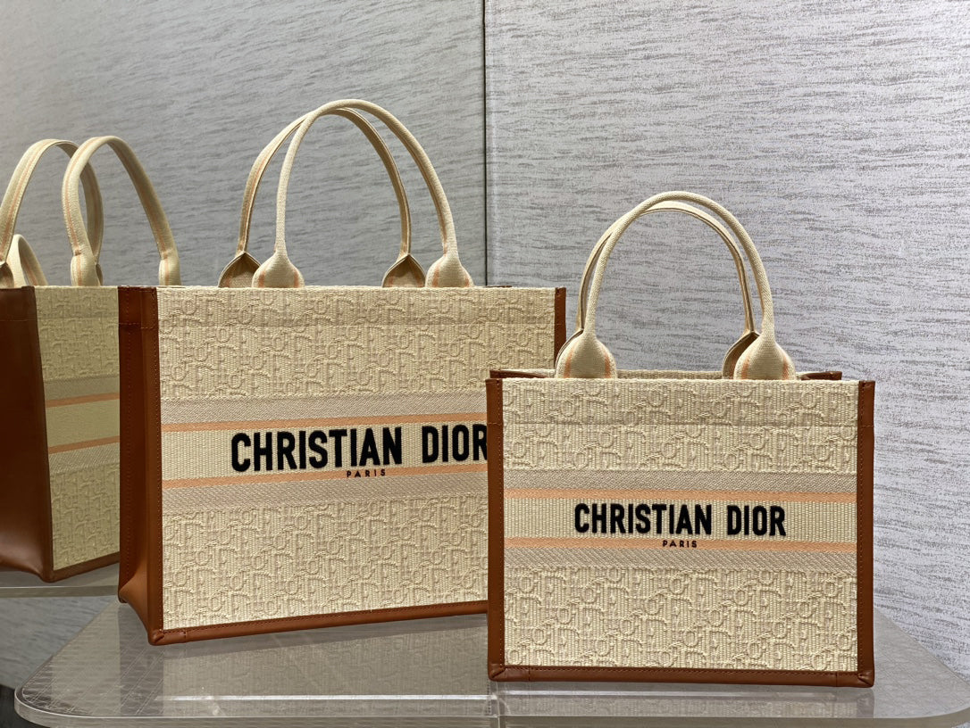 DO Book Tote Bag Beige Oblique Embroidered Raffia and Camel Calfskin