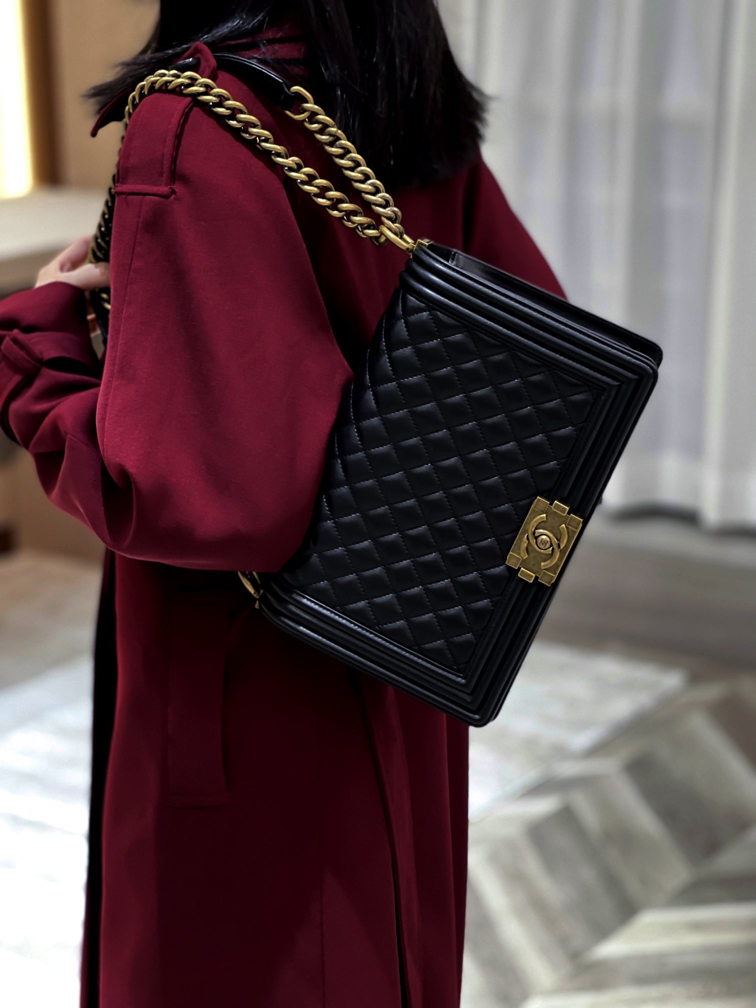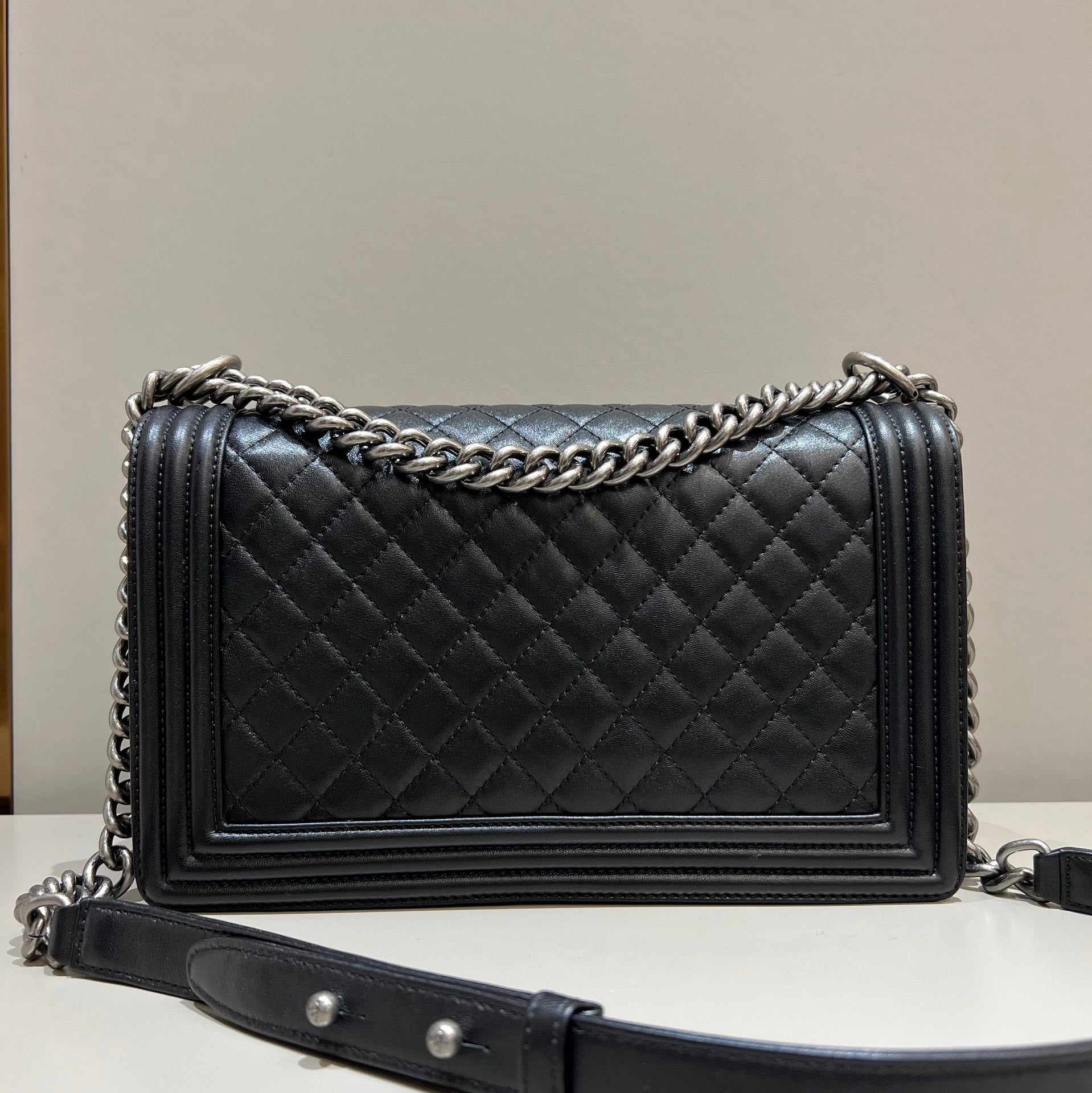 CH LARGE BOY HANDBAG 28 Lambskin Black