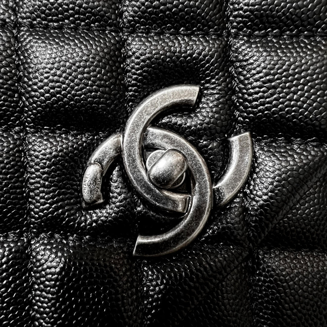 CH LARGE FLAP BAG WITH TOP HANDLE 29 Small Grained Calfskin Black