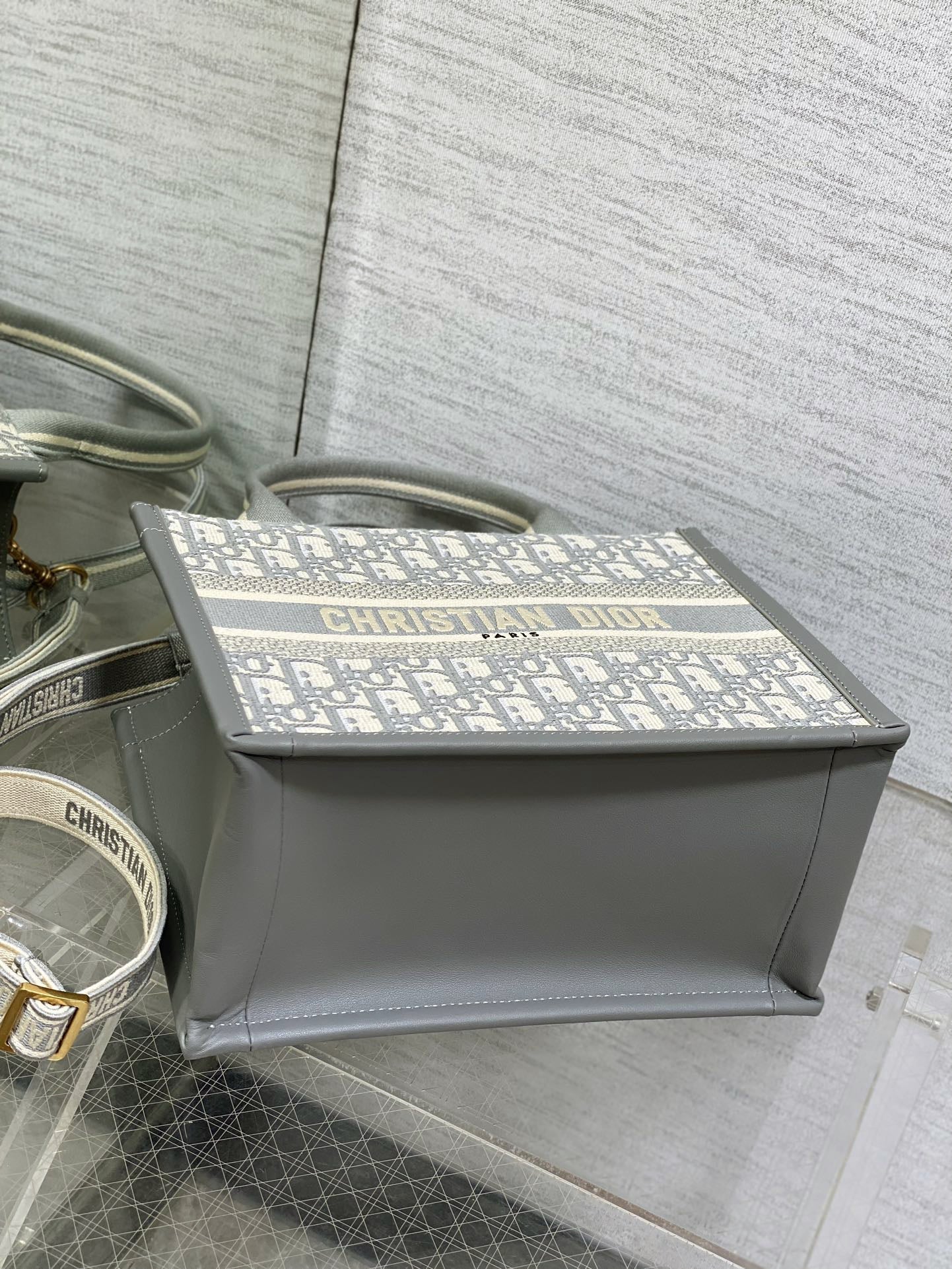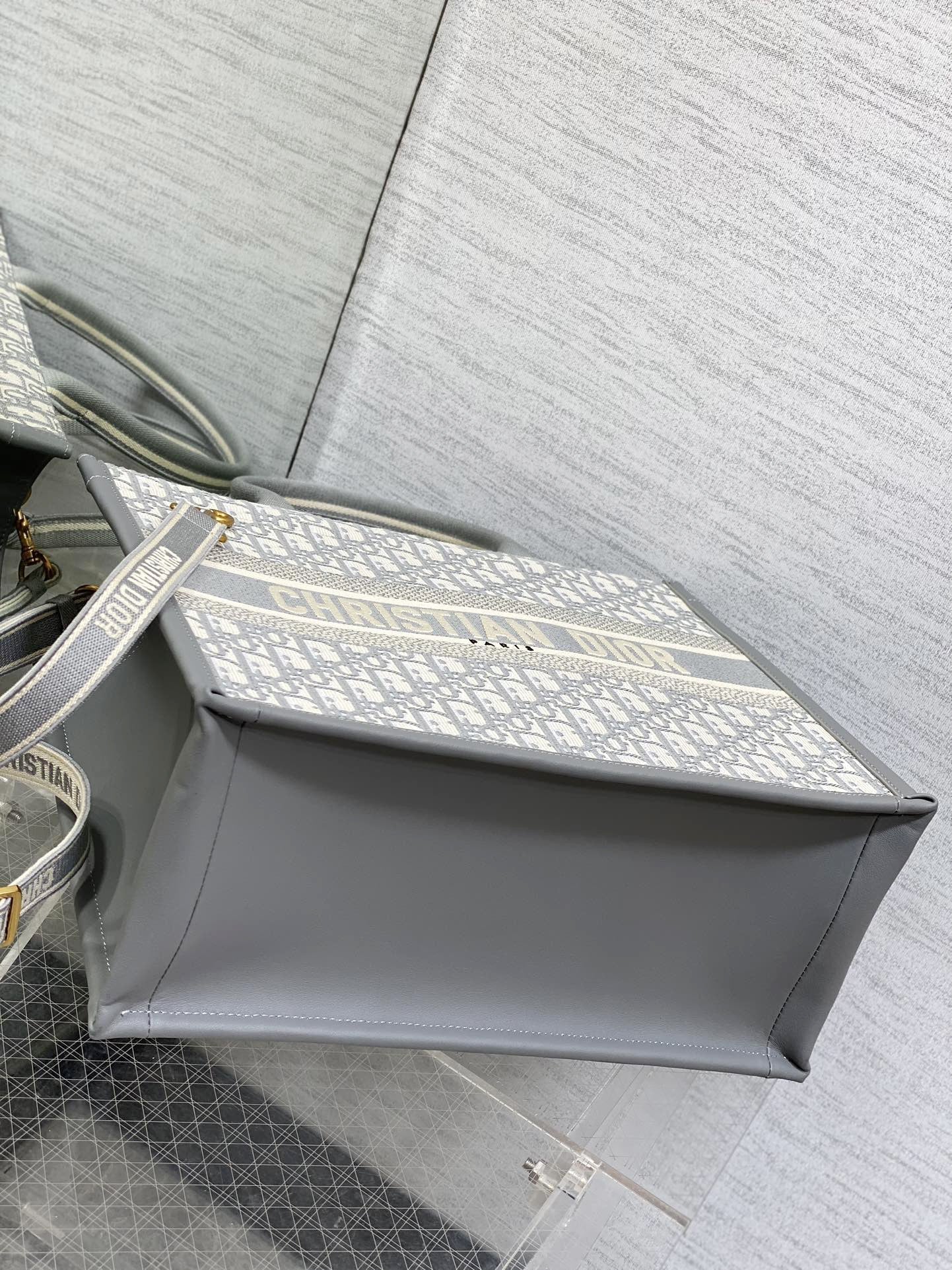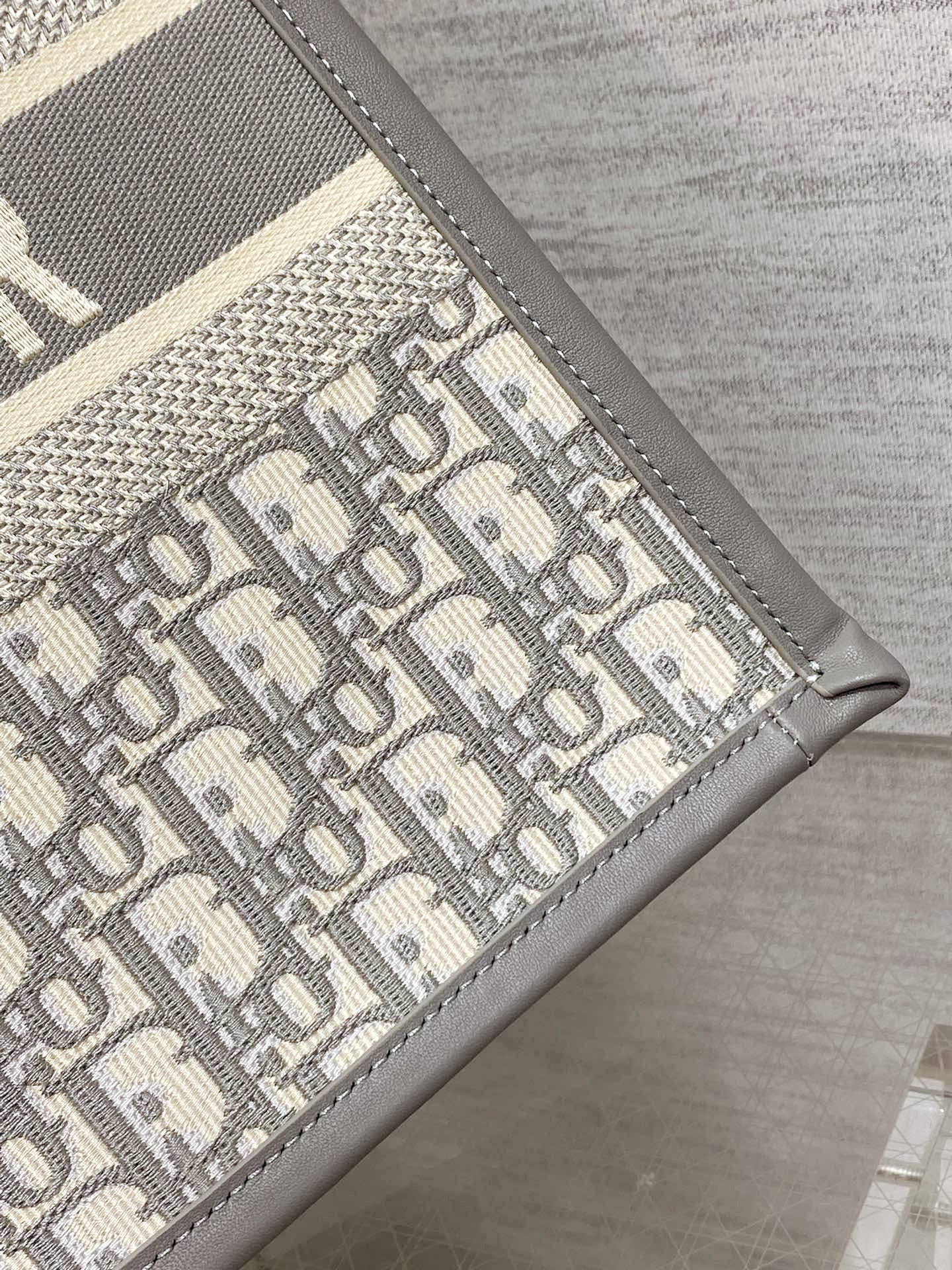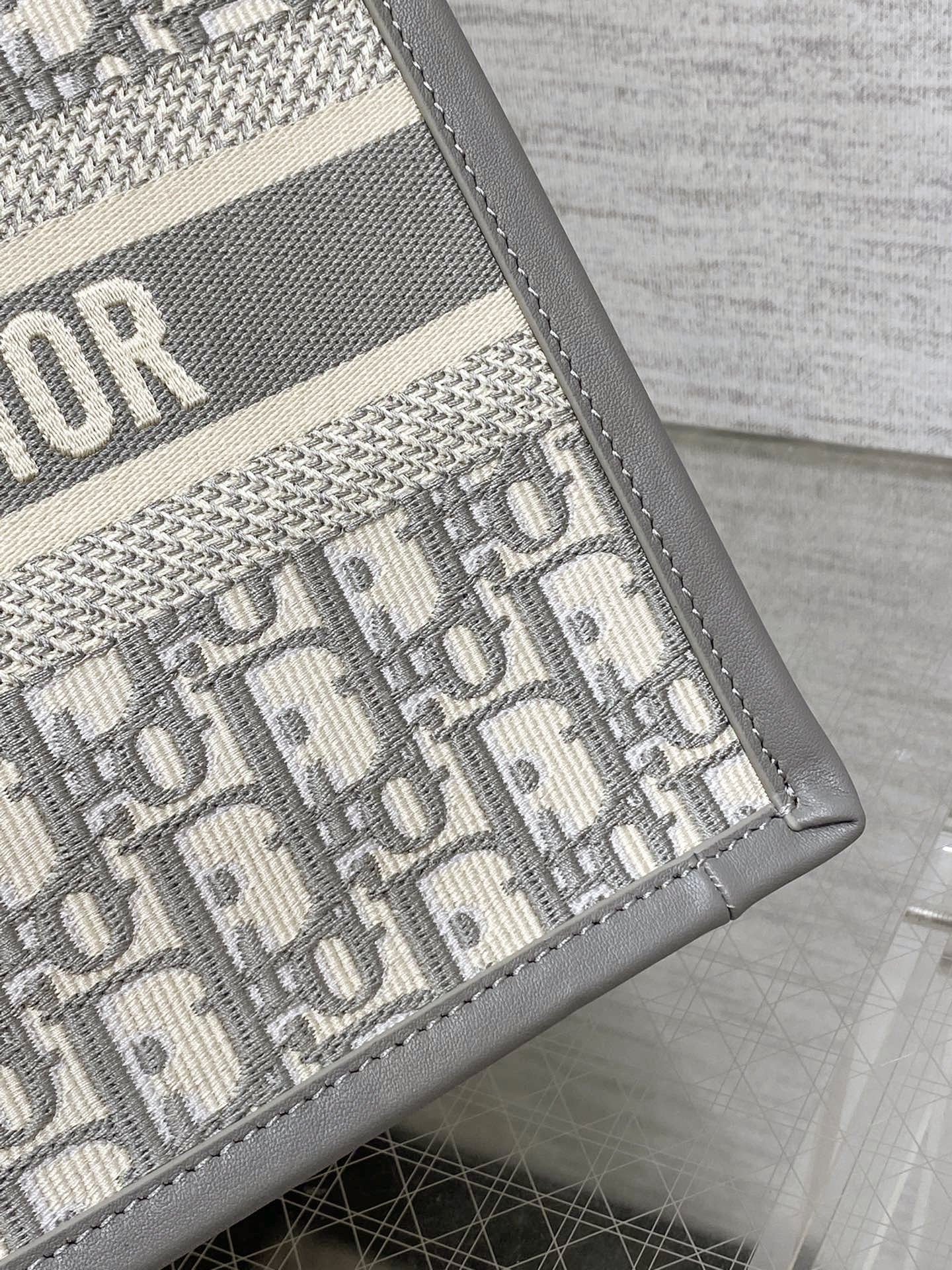 DO Medium Book Tote Gray Dior Oblique Embroidery and Calfskin