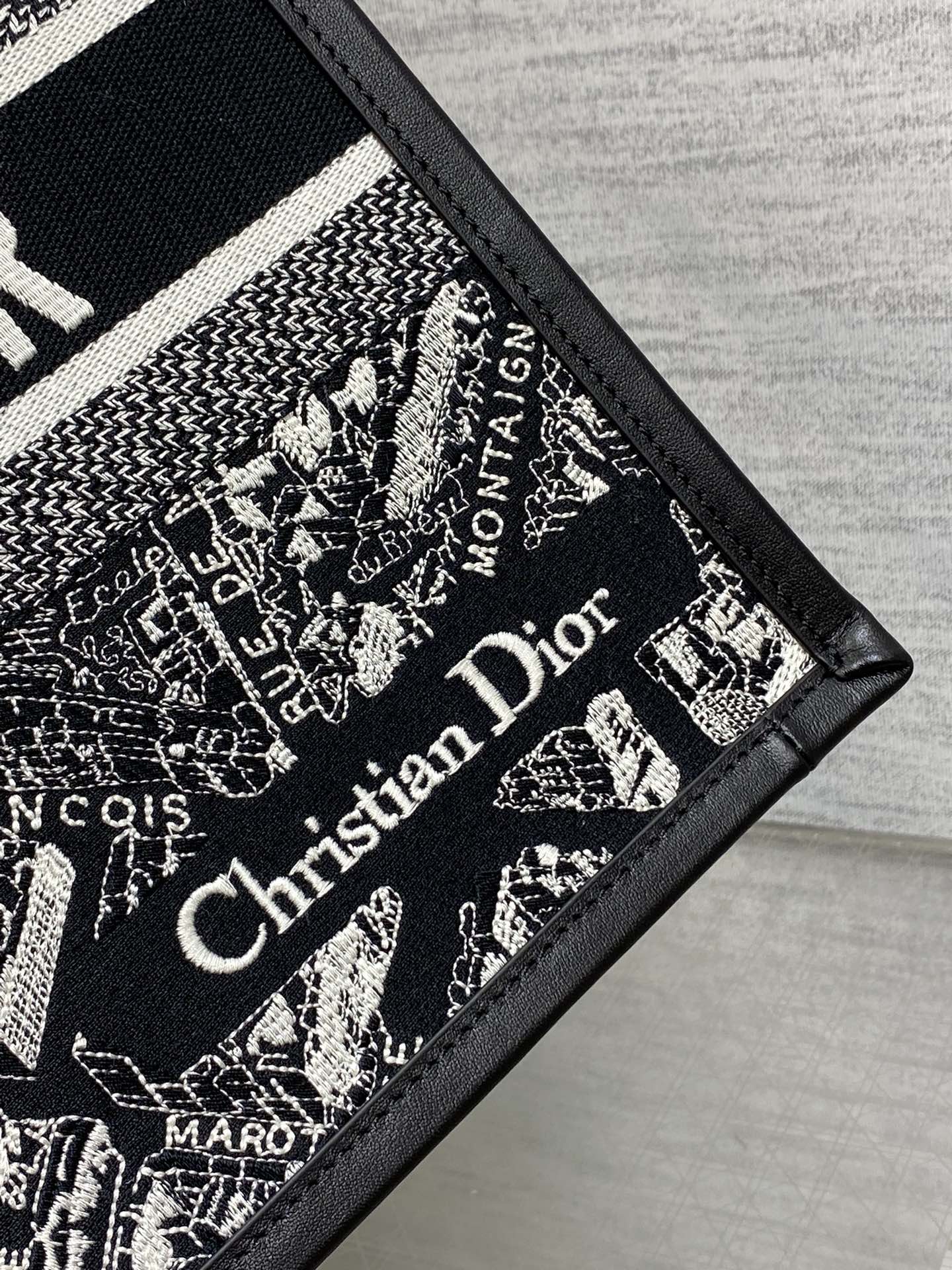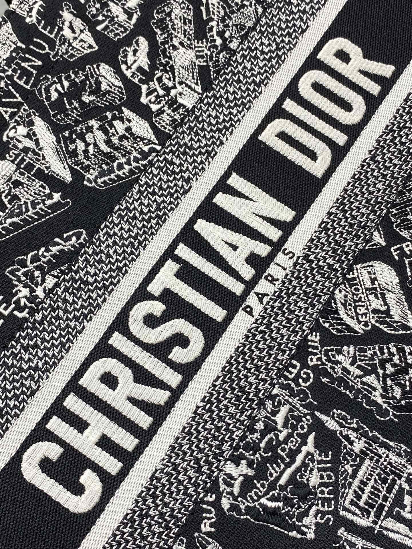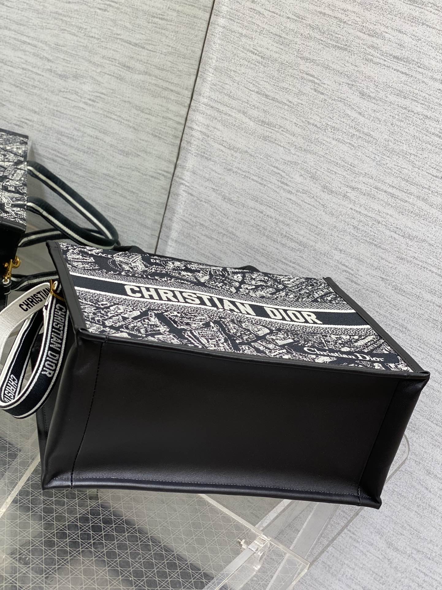 DO Medium Book Tote Black and White Plan de Paris Embroidery with Black Calfskin