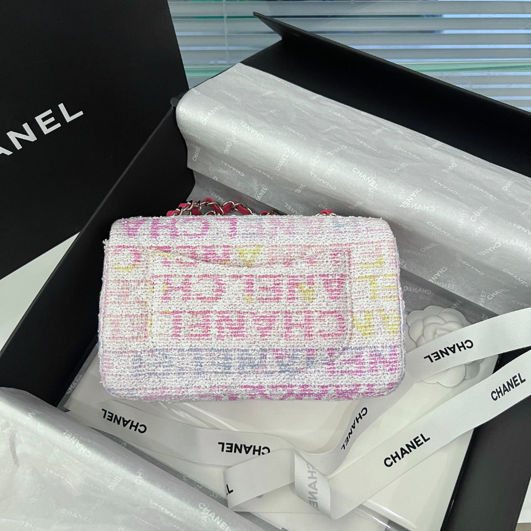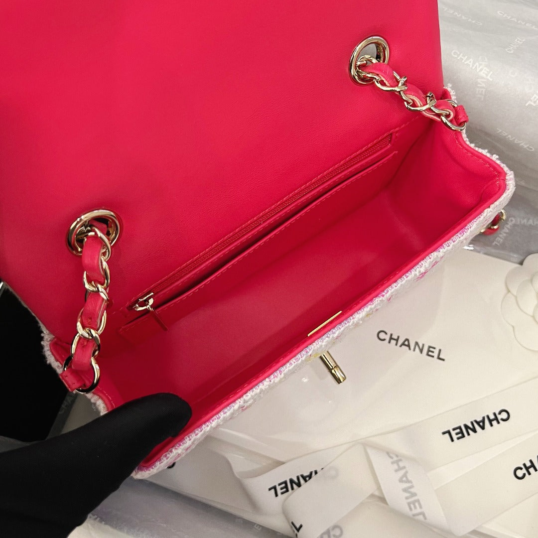 CH MINI CLASSIC HANDBAG 20 Cotton & Wool Tweed Red, Pink & Yellow, White