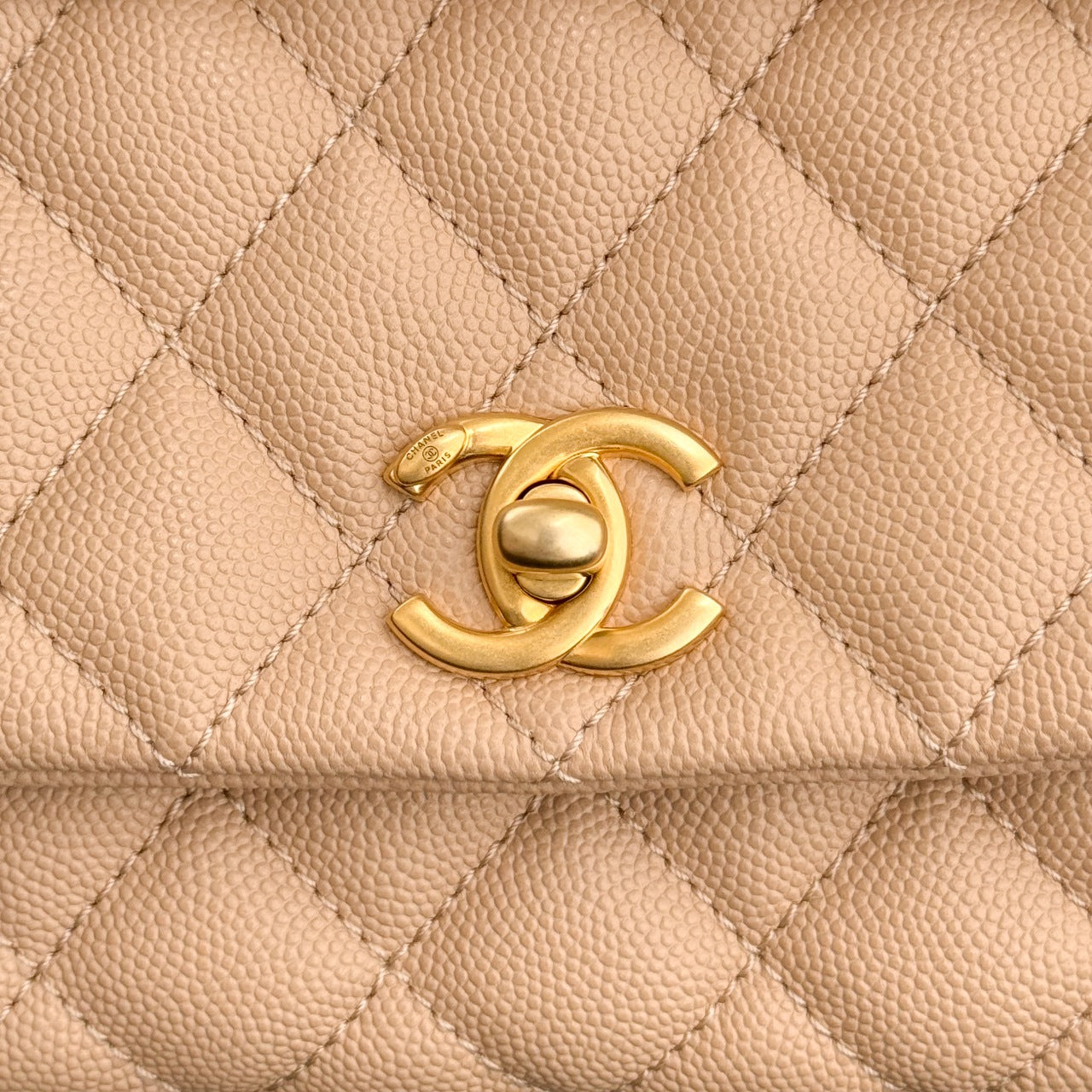 CH MINI FLAP BAG WITH TOP HANDLE 19 Grained Calfskin Light Teas