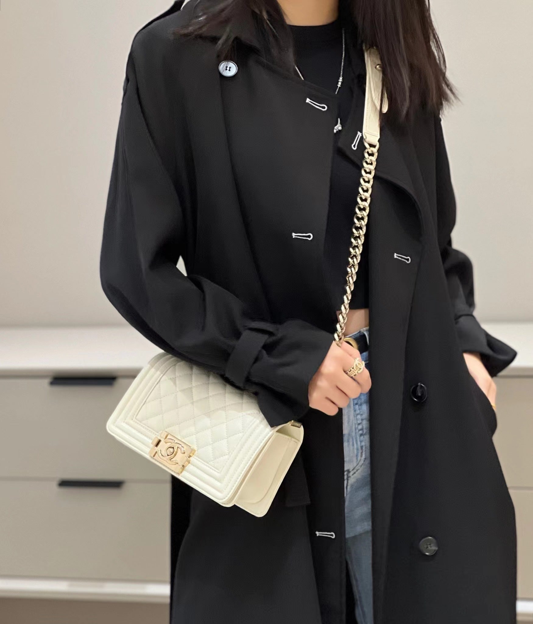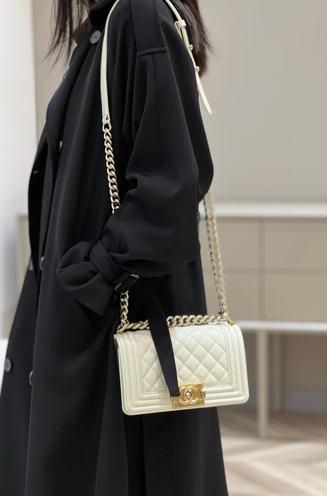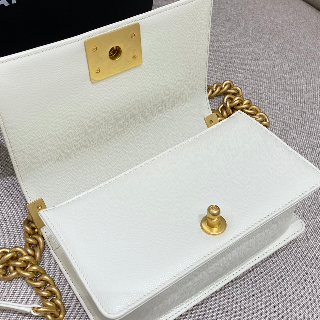 CH SMALL BOY HANDBAG 20 Small Grained Calfskin Ivory White