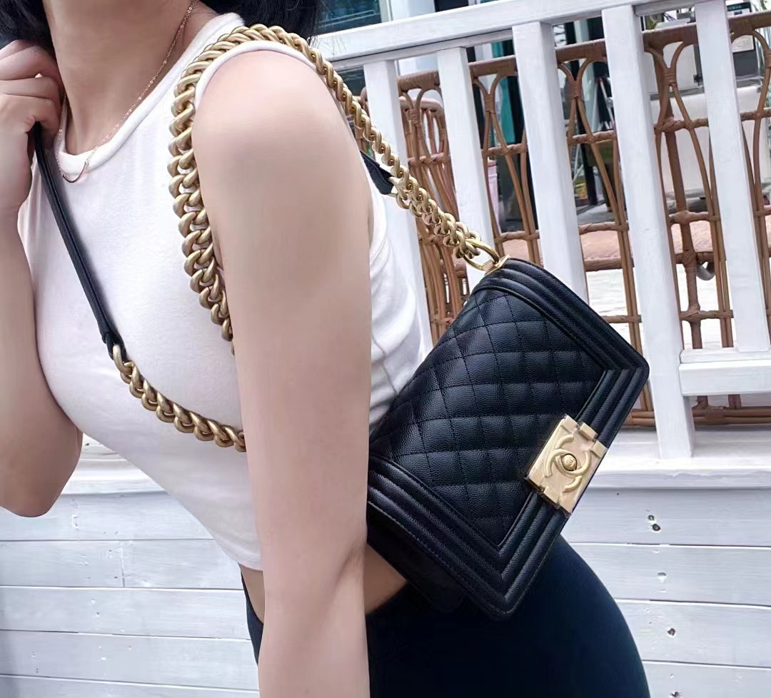 CH SMALL BOY HANDBAG 20 Small Grained Calfskin Black