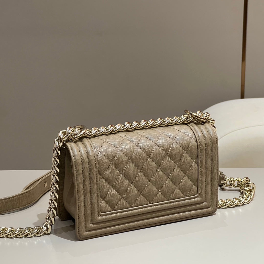 CH SMALL BOY HANDBAG 20 Small Grained Calfskin Chai (Teas)