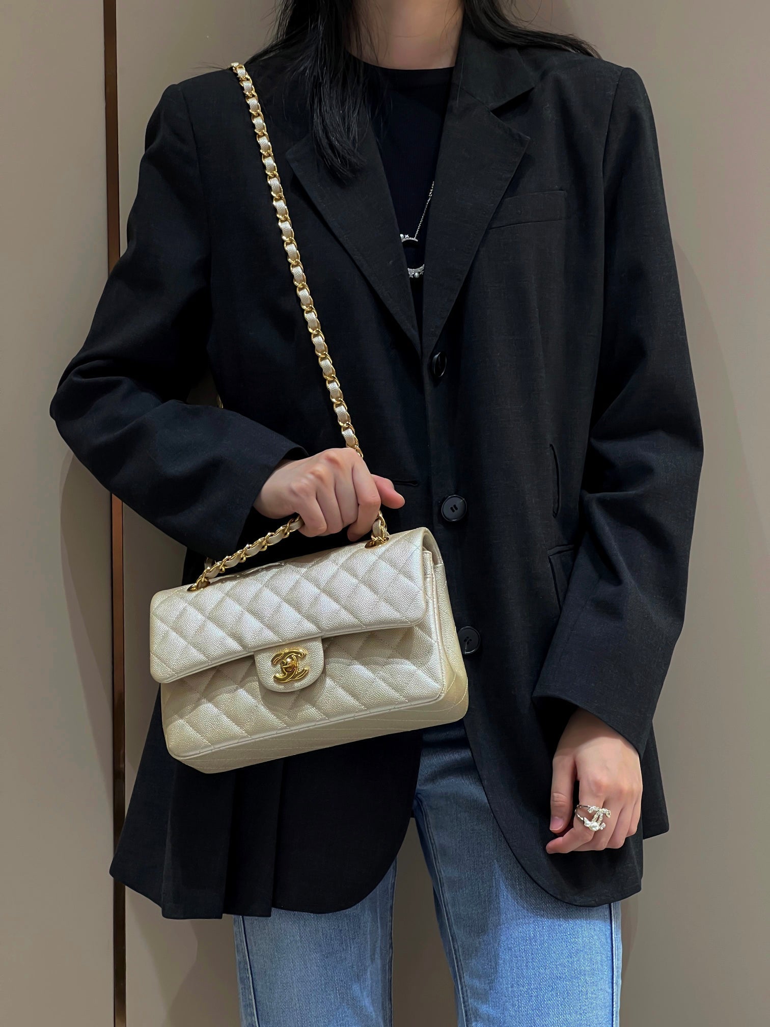 CH SMALL CLASSIC HANDBAG 23 Small Grained Calfskin Champagne Gold
