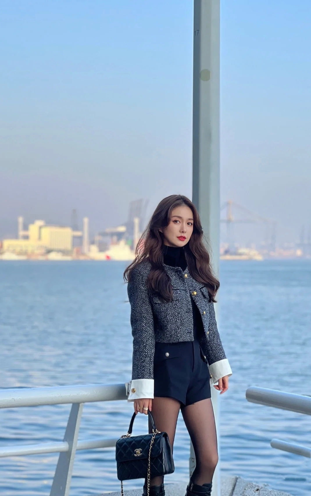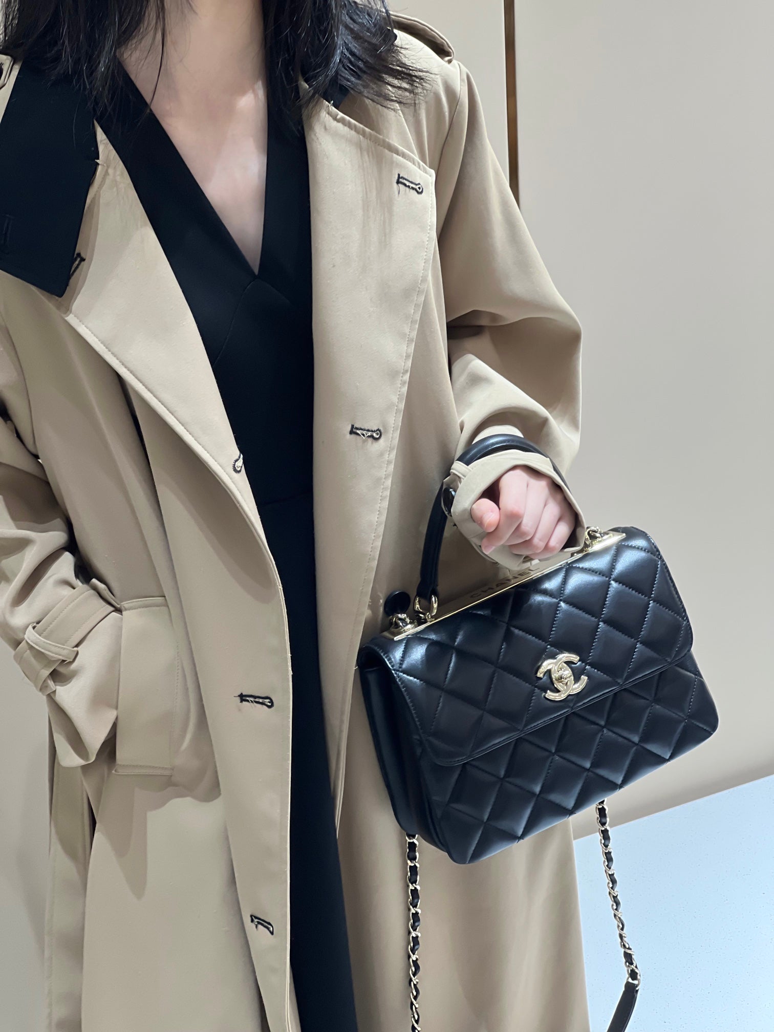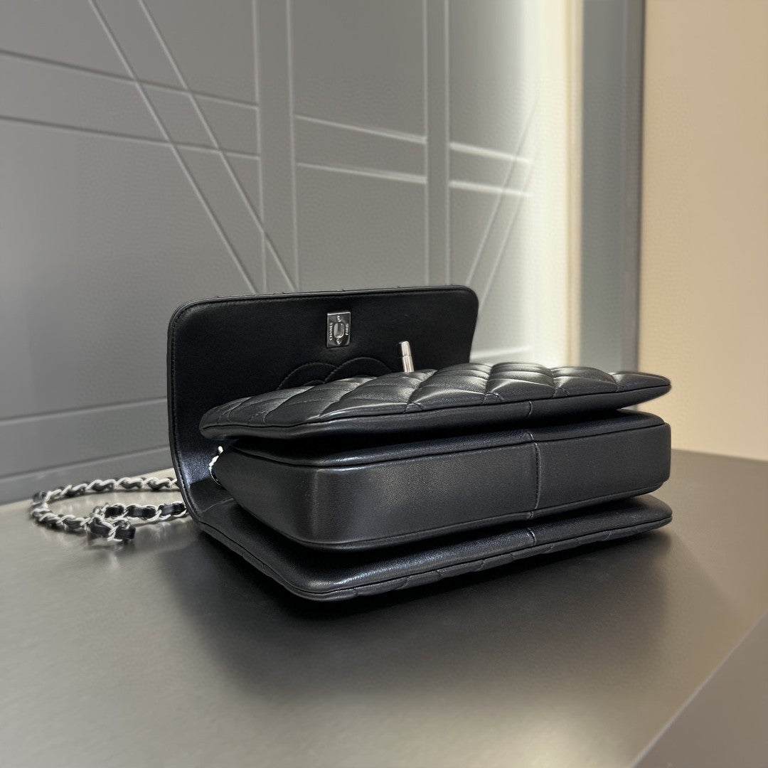 CH FLAP BAG WITH TOP HANDLE Trendy cc Lambskin Black