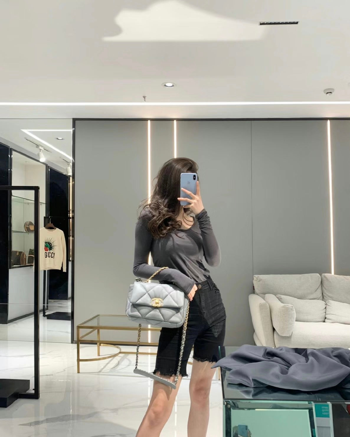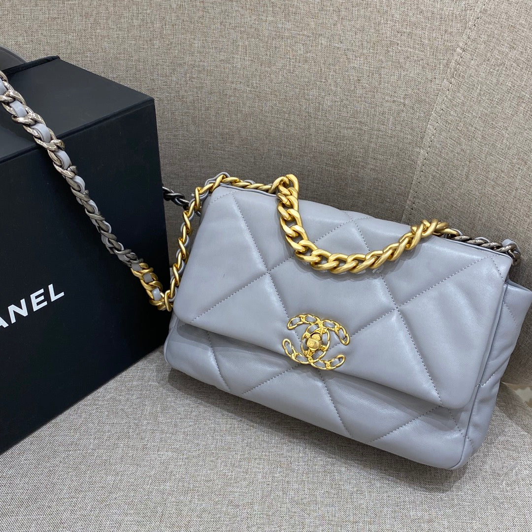 CH 19 HANDBAG 26 Lambskin Light Grey