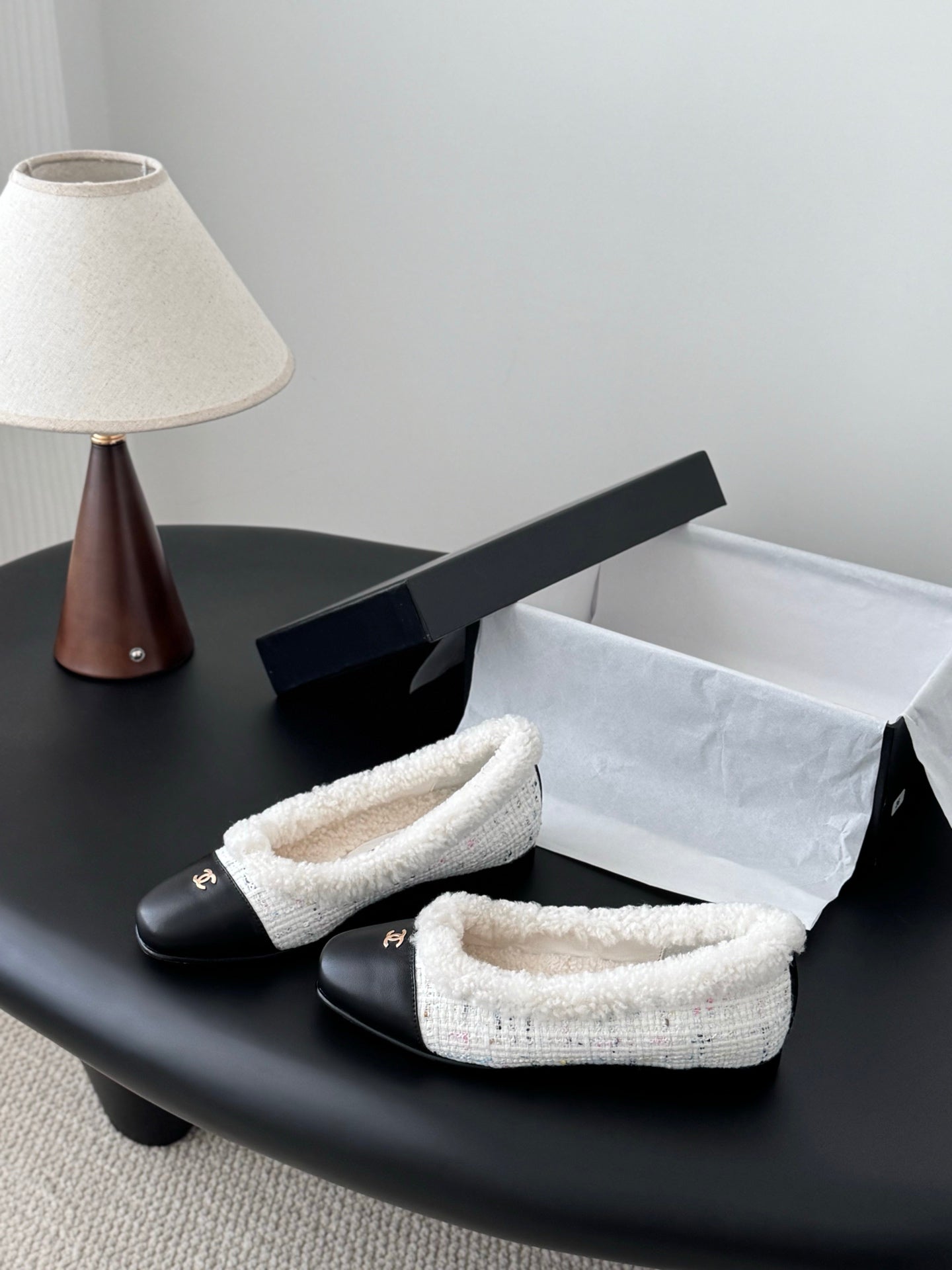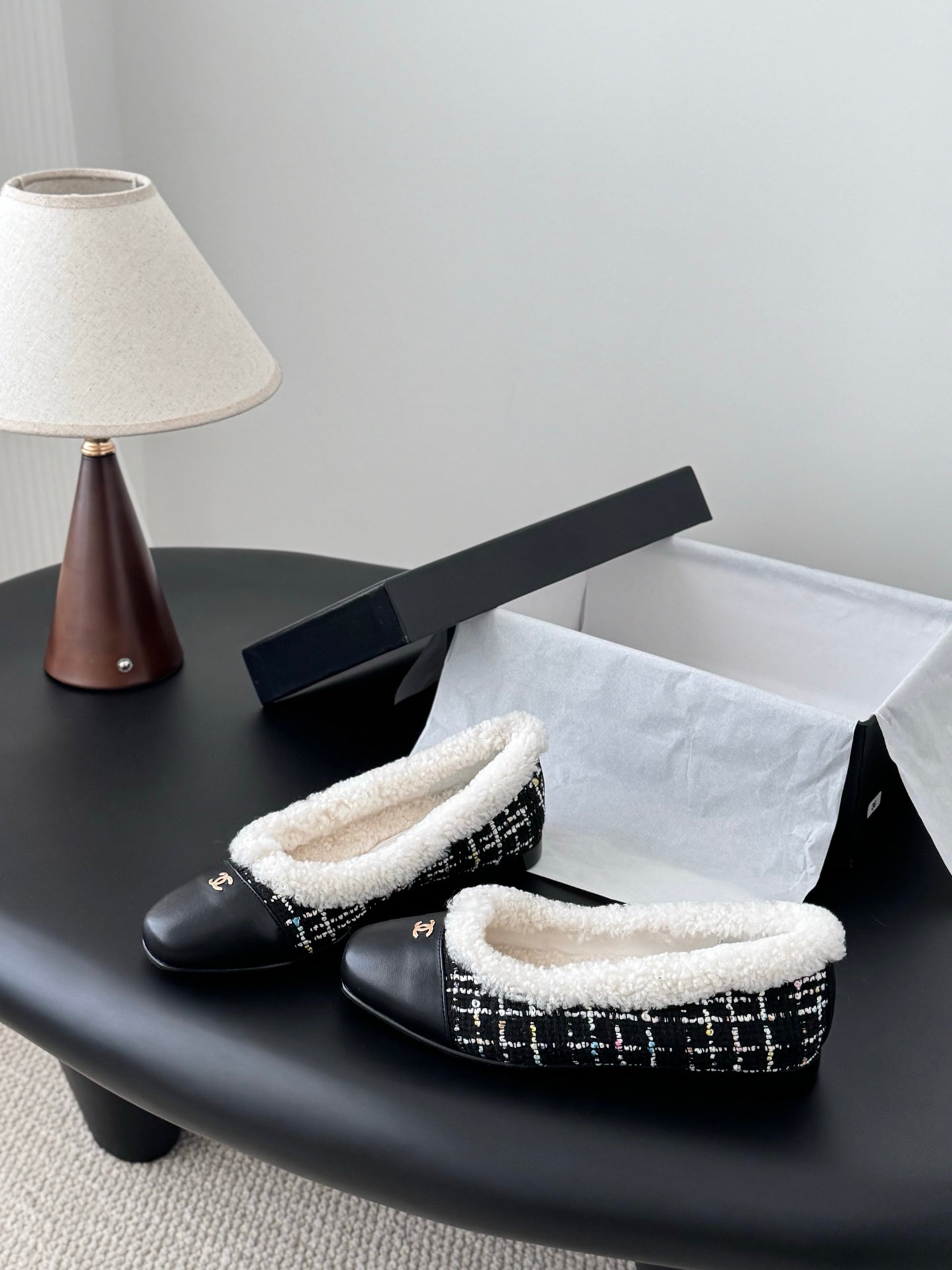 Chan 25fw fleece lined flats