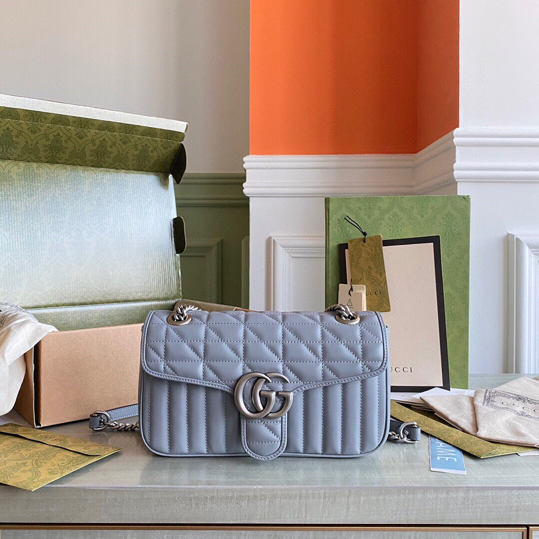 GC GG Marmont small shoulder bag Black / White / Dusty Pink / Gray Blue