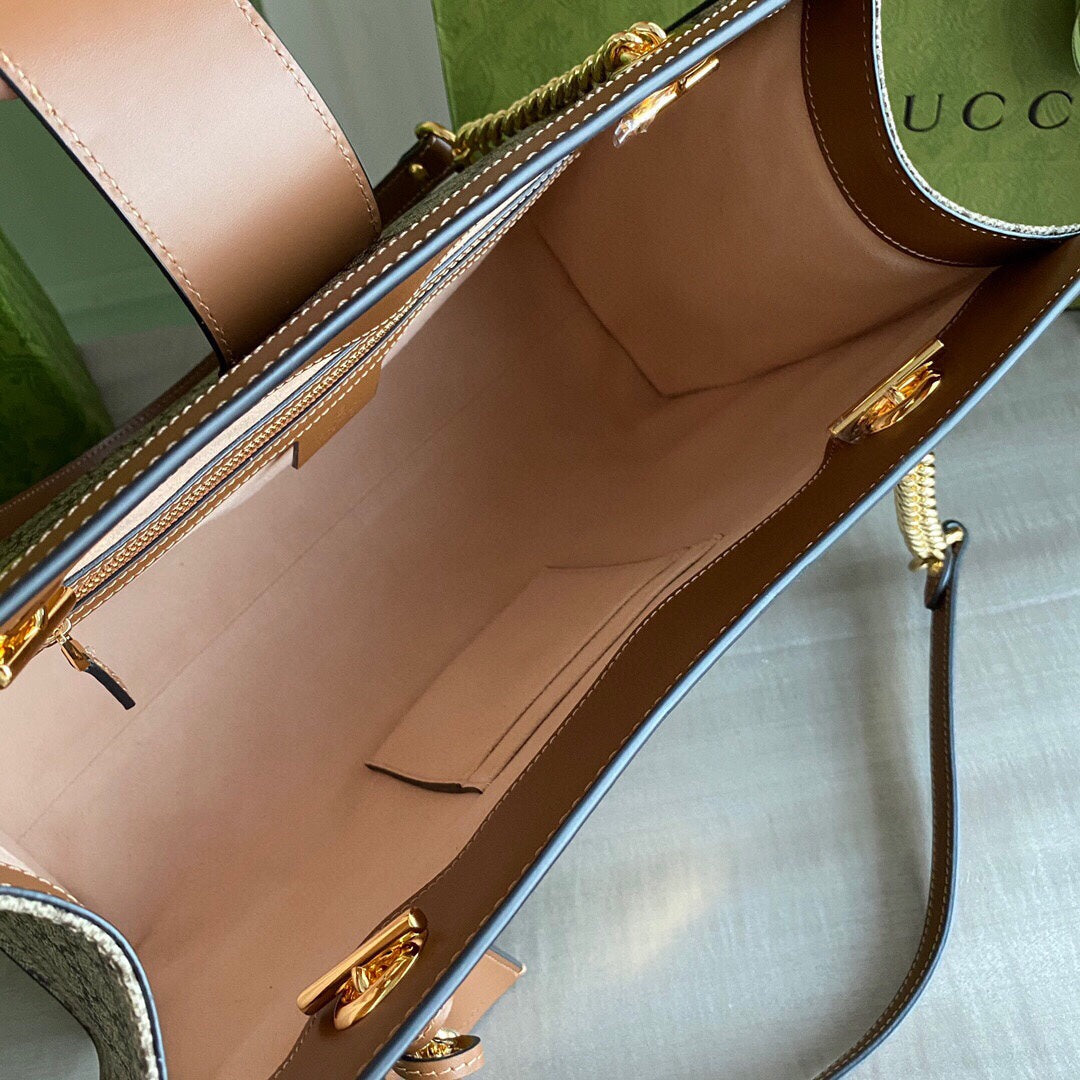 GC Padlock medium shoulder bag tote Beige/ebony GG Supreme canvas, with brown leather detail
