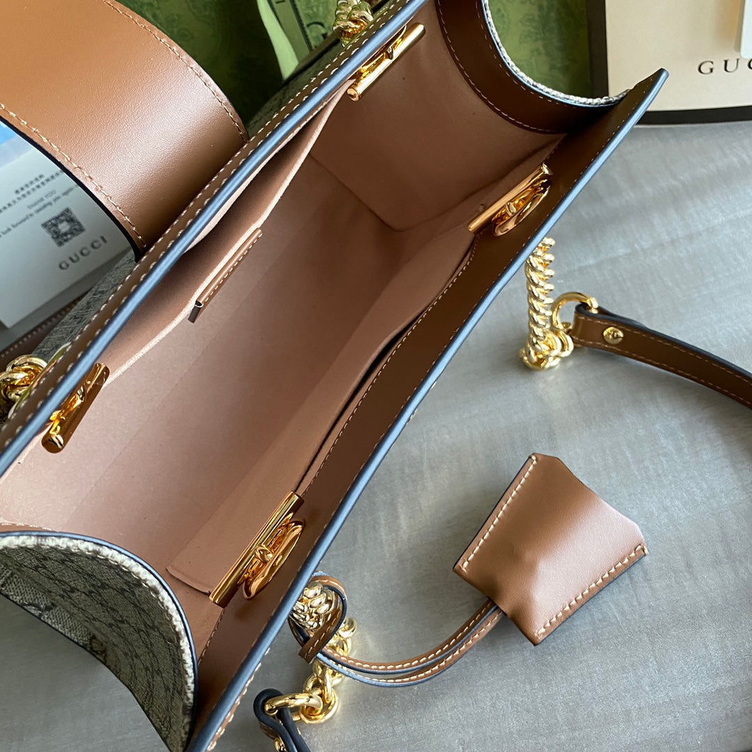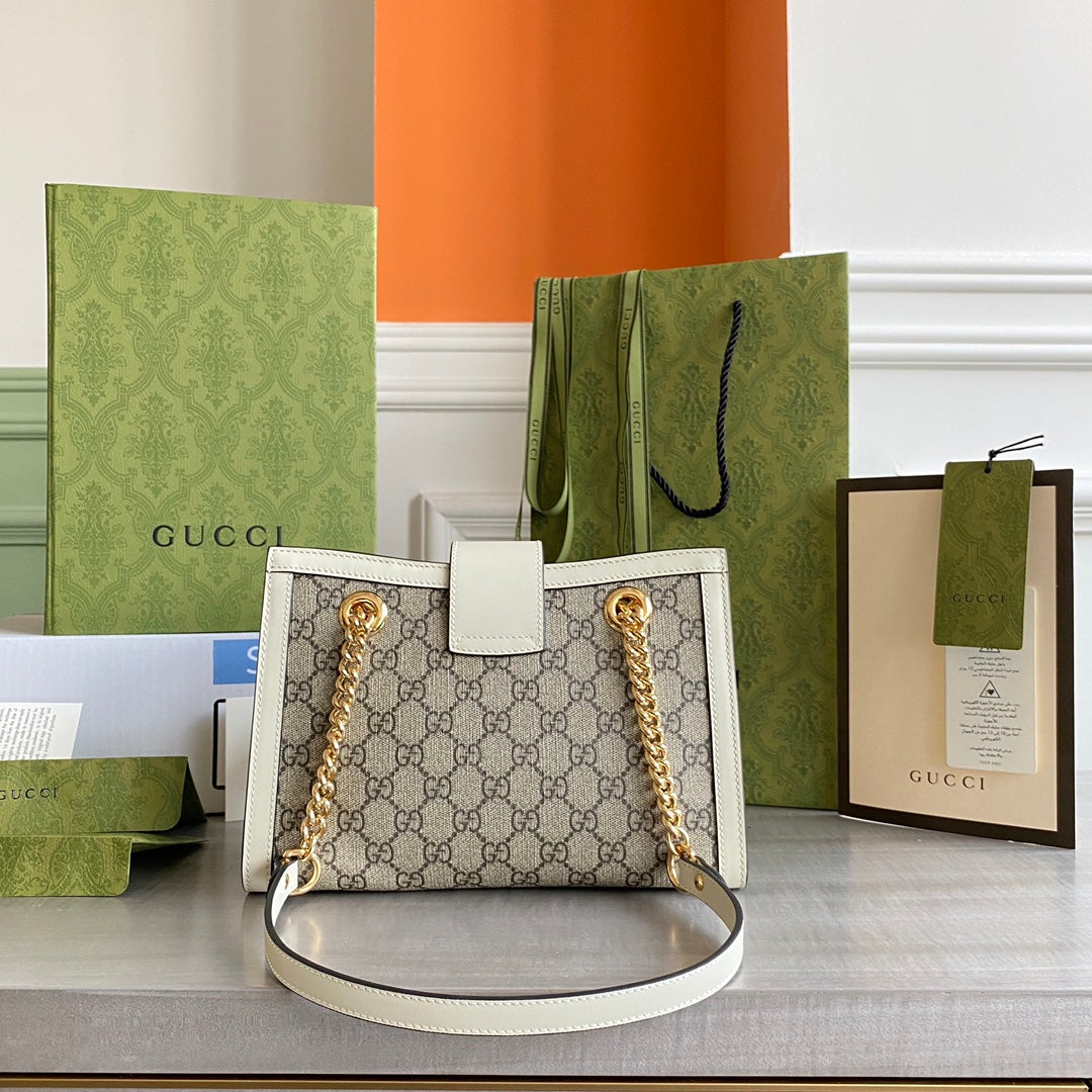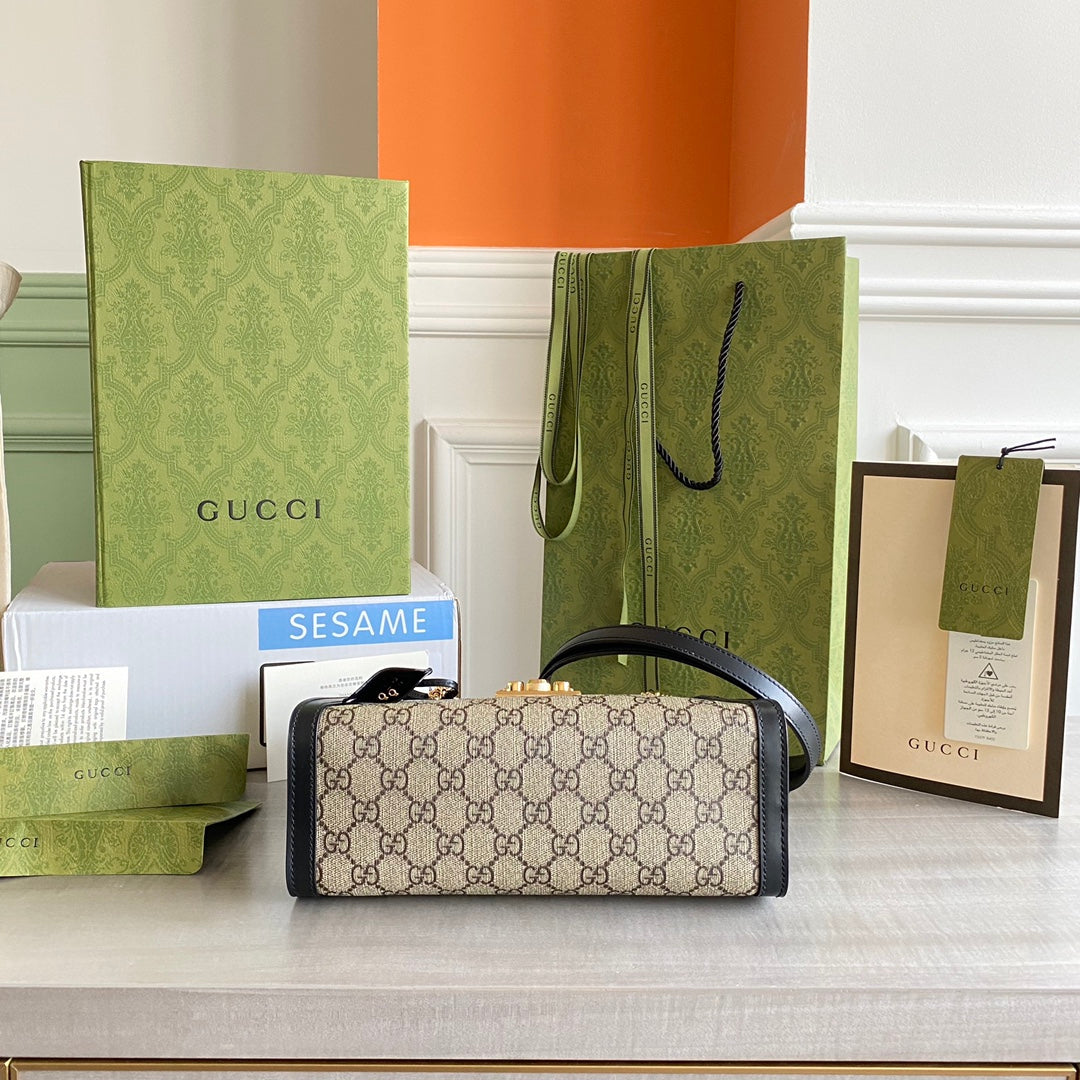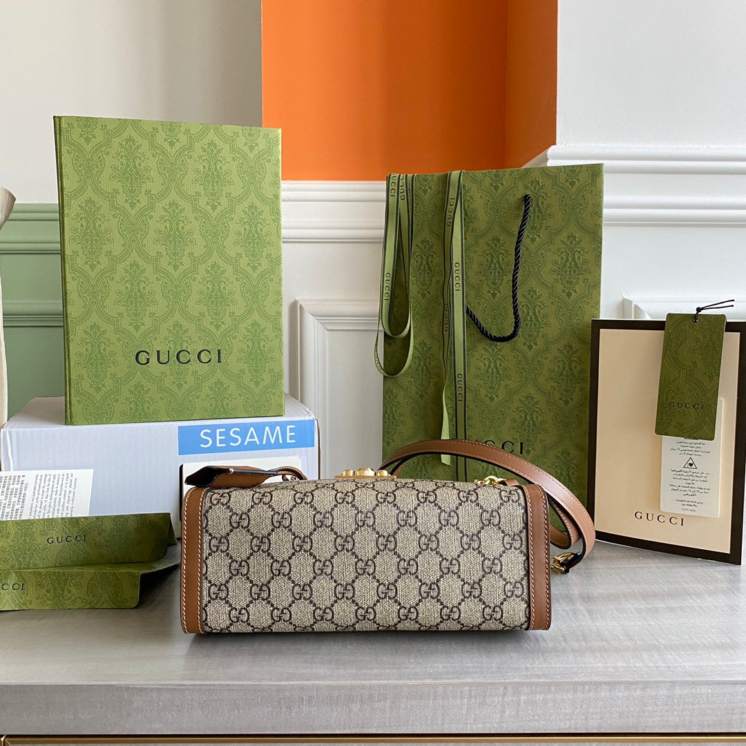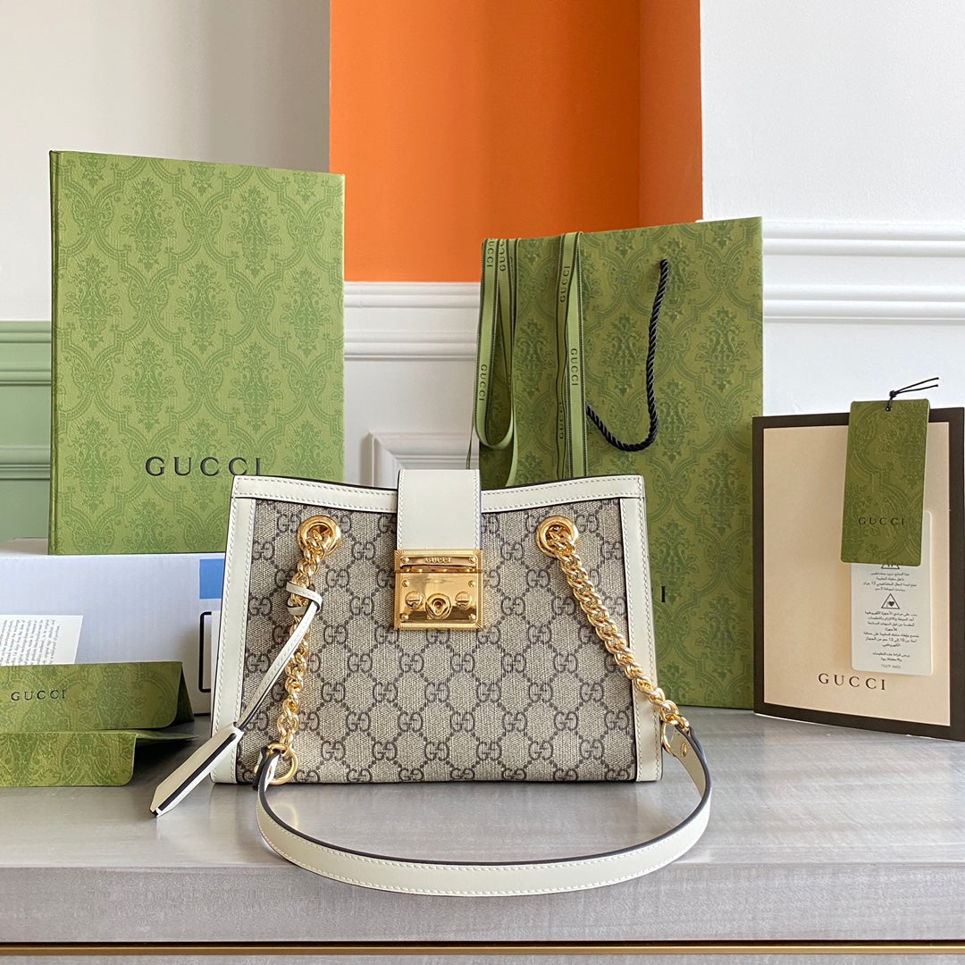 GC Padlock small shoulder bag Beige/ebony GG Supreme canvas, with brown leather detail