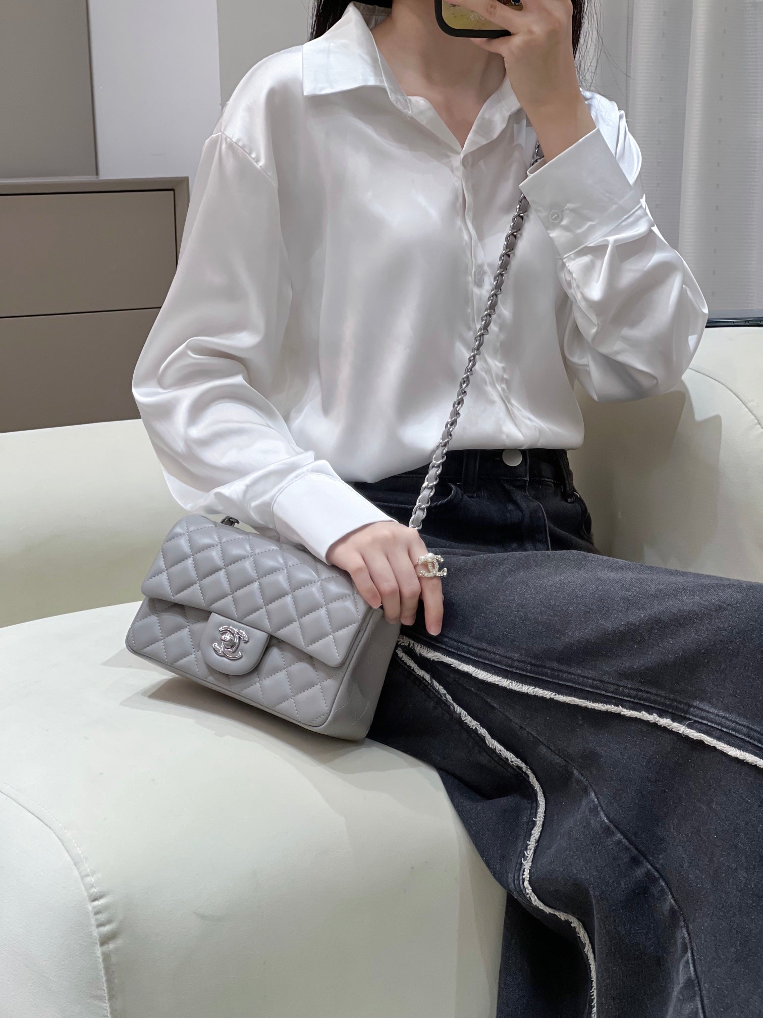 CH MINI CLASSIC HANDBAG 20 Lambskin Dove Gray